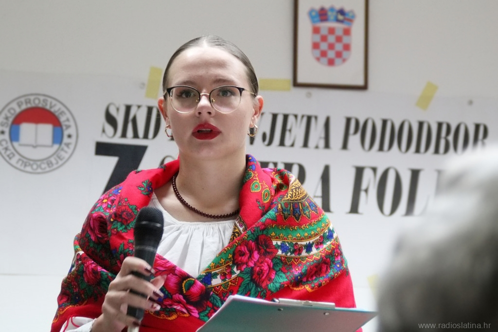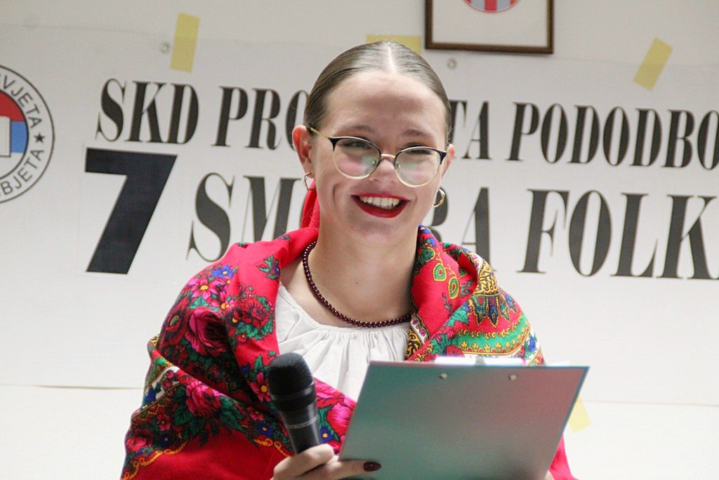 Na početku programa sve nazočne je pozdravila predsjednica slatinskog Pododbora Ljubinka Pavlović, koja je izrazila posebnu dobrodošlicu članovima gostujućih kulturno-umjetničkih društava. Istaknula je kako je SKD „Prosvjeta“ Slatina, osnovana 2016. godine, prepoznata po nastojanjima da očuva i prenese bogato naslijeđe Slavonije i šire, a upravo su smotre folklora prilika da se prikaže raskoš narodnih nošnji, pjesme, plesovi i običaji.
