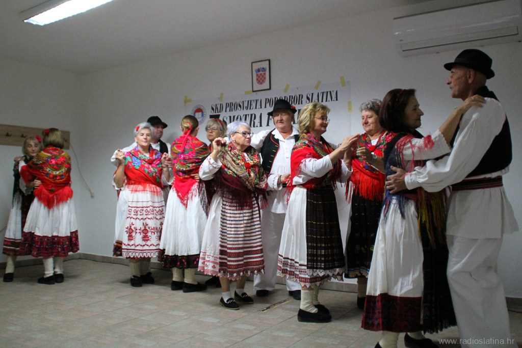 Smotru su svojim nastupom otvorili domaćini, SKD „Prosvjeta“ Pododbor Slatina, koji danas broji pedesetak članova, od kojih je dvadesetak aktivnih s područja Slatine i okolice. Uz folklornu sekciju, u pododboru djeluje i pjevačka sekcija, a od ove godine započet je i rad na formiranju dječje folklorne skupine. Domaćini izvode tradicijske plesove Slavonije, a redovito sudjeluju na smotrama folklora u Hrvatskoj i Srbiji.