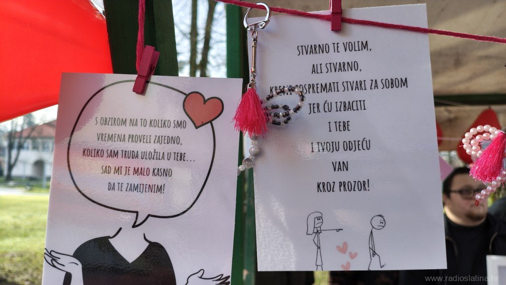 Udruga Vretenac Slatina za danas je, povodom Dana zaljubljenih u središtu grada organizirala „Štand ljubavi”, koji je postavljen na ulazu u park 136. slatinske brigade, preko puta kioska. Građani ga mogu posjetiti do 12 sati i podržati rad udruge kupnjom prigodnih rukotvorina.