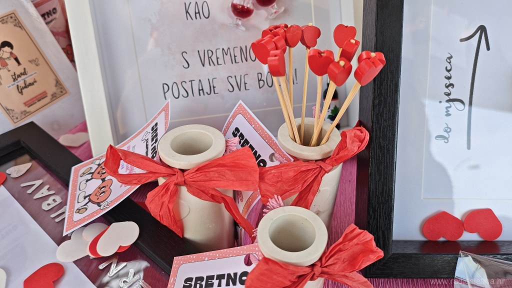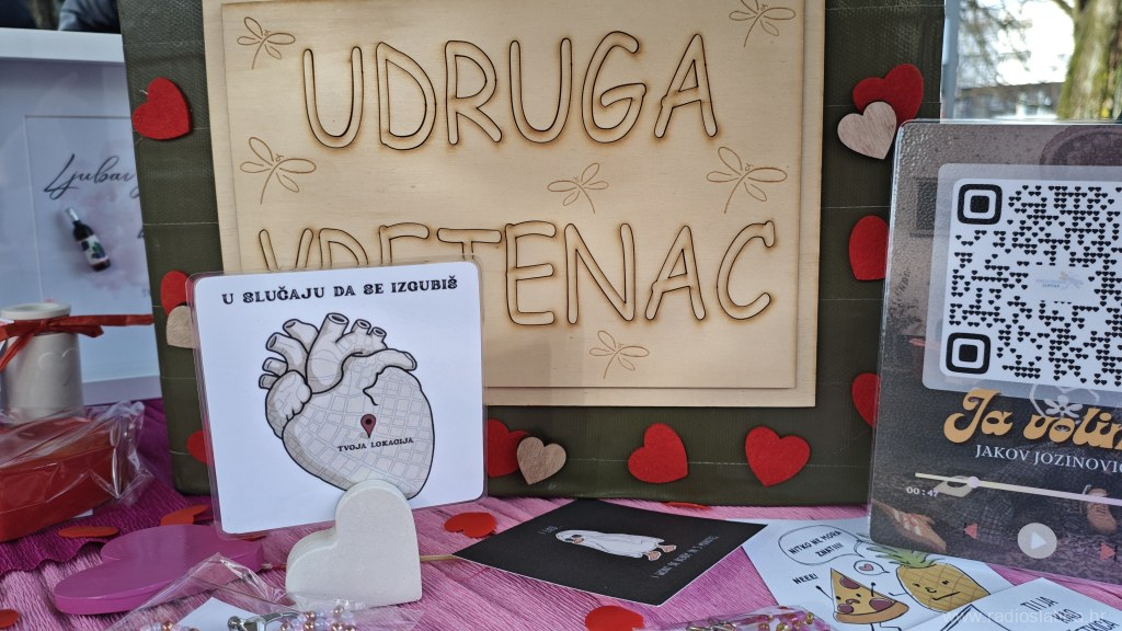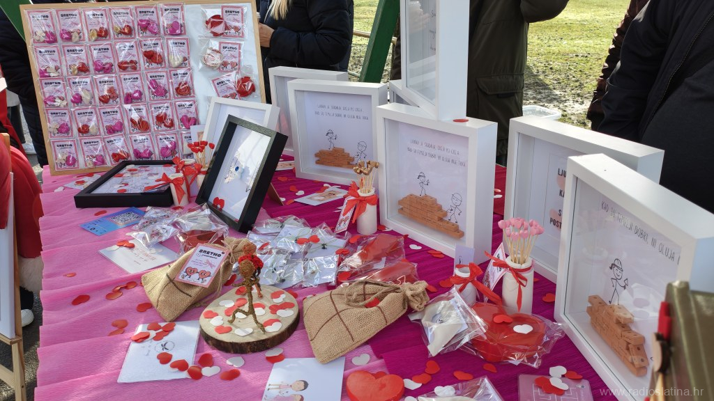 U ponudi se nalaze okviri s ljubavnim motivima, humoristične valentinovske izjave, QR kodovi s omiljenim pjesmama, magneti u obliku vretenaca koji svijetle u mraku, privjesci, ljubavni križić-kružić te gipsani modeli s prigodnim motivima. Sve rukotvorine izrađene su s puno pažnje i kreativnosti, a svaka kupnja izravno podupire aktivnosti i programe udruge.