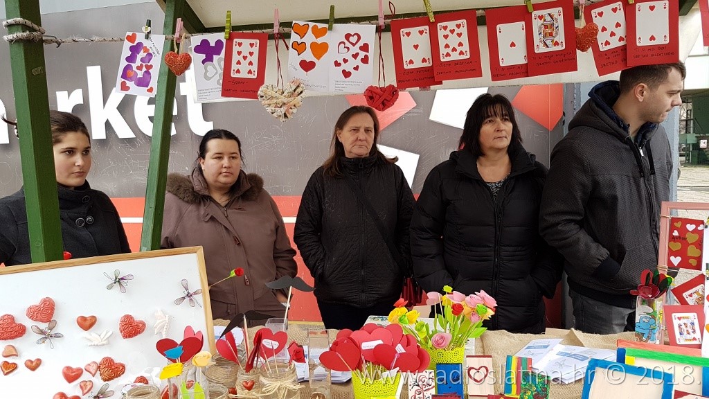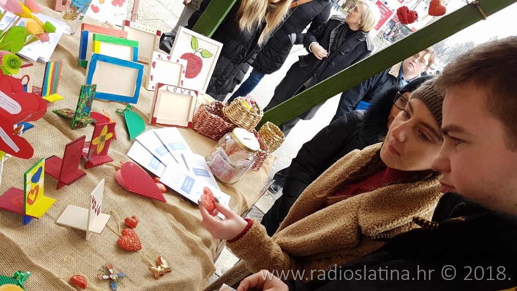 – “Okupili smo se na ovom štandu kako bi rad udruge predstavili građanima. Sve što smo izradili ne prodaje se već svatko tko nađe nešto za sebe može ostaviti skromnu donaciju, koja će nama puno značiti za daljnji rad, održavanje i organizaciju radionica, za kupovinu materijala koje koristimo na tim radionicama. Sve predmete tematski vezane ovaj puta za Valentinovo izradili su korisnici udruge zajedno sa volonterima na tjednim radionicama koje se održavaju svaki četvrtak u OŠ Eugena Kumičića.”