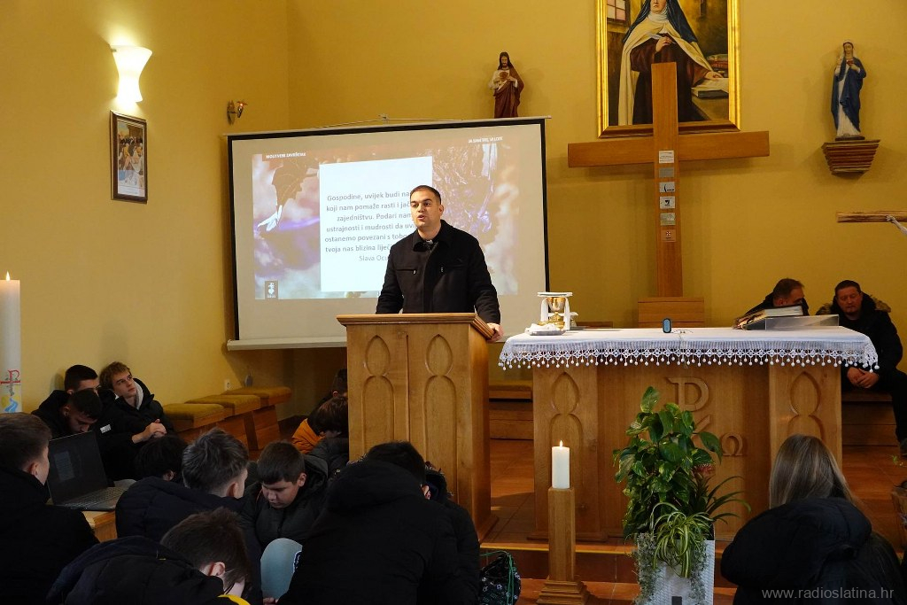 Program susreta započeo je u crkvi sv. Terezije Avilske gdje je okupljene krizmanike i mlade pozdravio domaći župnik i dekan Ivan Štivičić uputivši im riječ dobrodošlice. Potom je vjeroučitelj i član povjerenstva za pastoral mladih Požeške biskupije Zvonimir Zelenika održao katehezu na temu: „Ja sam trs, vi loze“. U uvodu je mladima predstavio povijest Susreta hrvatske katoličke mladeži, koji se održava od 1996. godine te je kroz susrete u različitim biskupijama uvijek donosio iskustvo zajedništva, molitve i živoga svjedočanstva vjere. Istaknuo je i značenje Križa SHKM-a, simbola koji prati pripremu domaćina te potiče na molitvu i zajedništvo. Vjeroučitelj Zelenika je podijelio i iskustva mladih koji su sudjelovali na ranijim susretima, a koji su svjedočili o snažnim duhovnim poticajima, novim prijateljstvima i obnovljenoj želji za aktivnijim življenjem vjere. Ti su susreti, naglasio je, mnogima postali izvor radosti i nade.