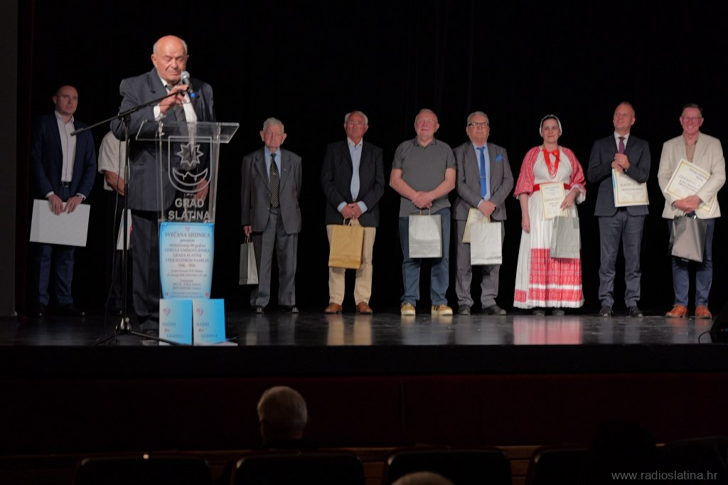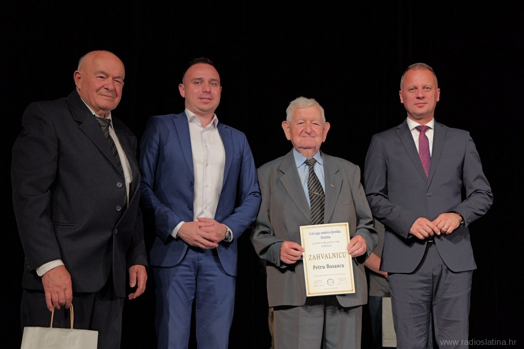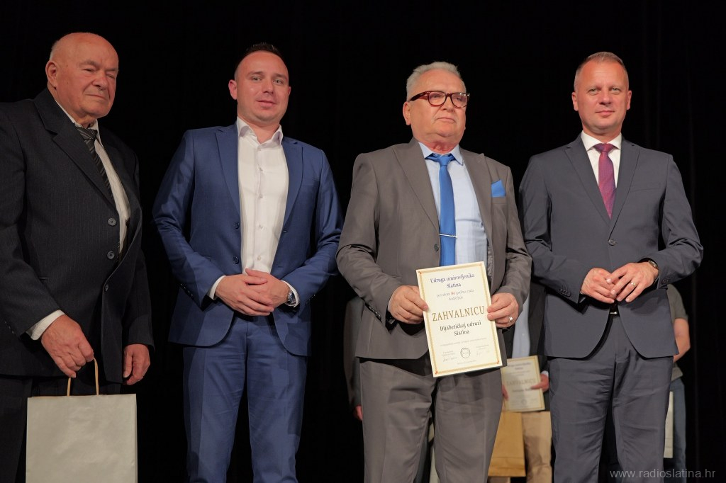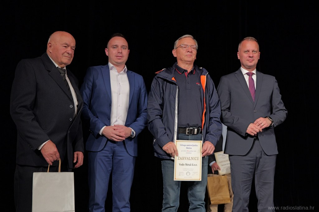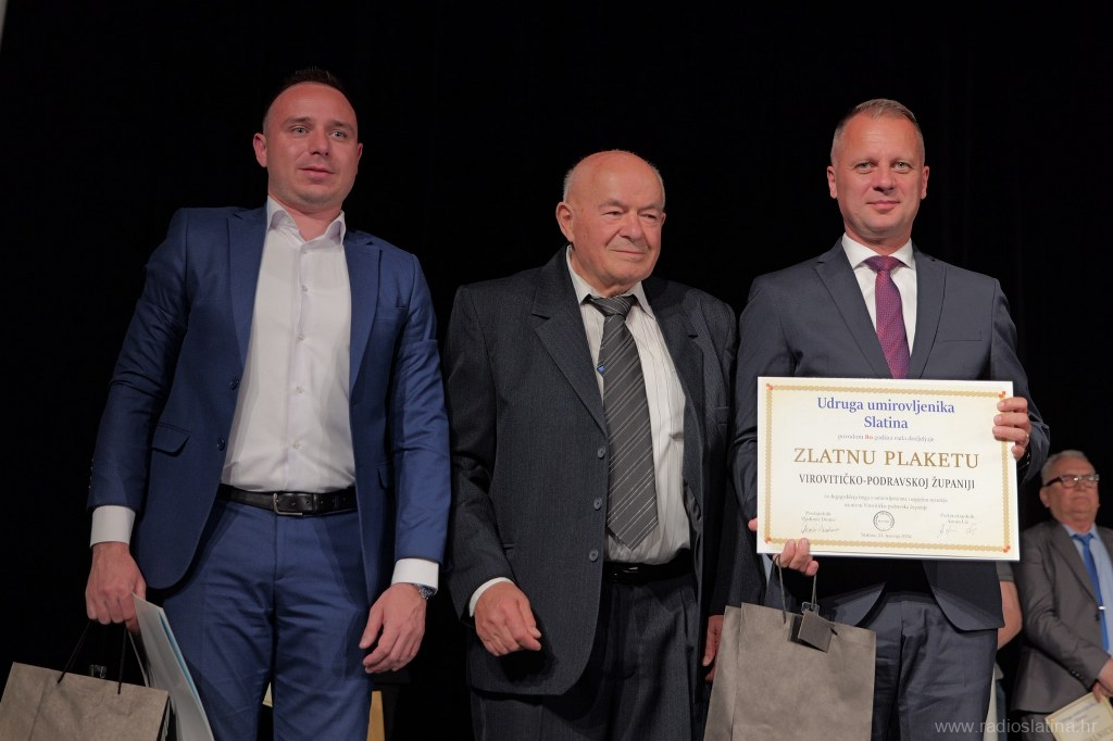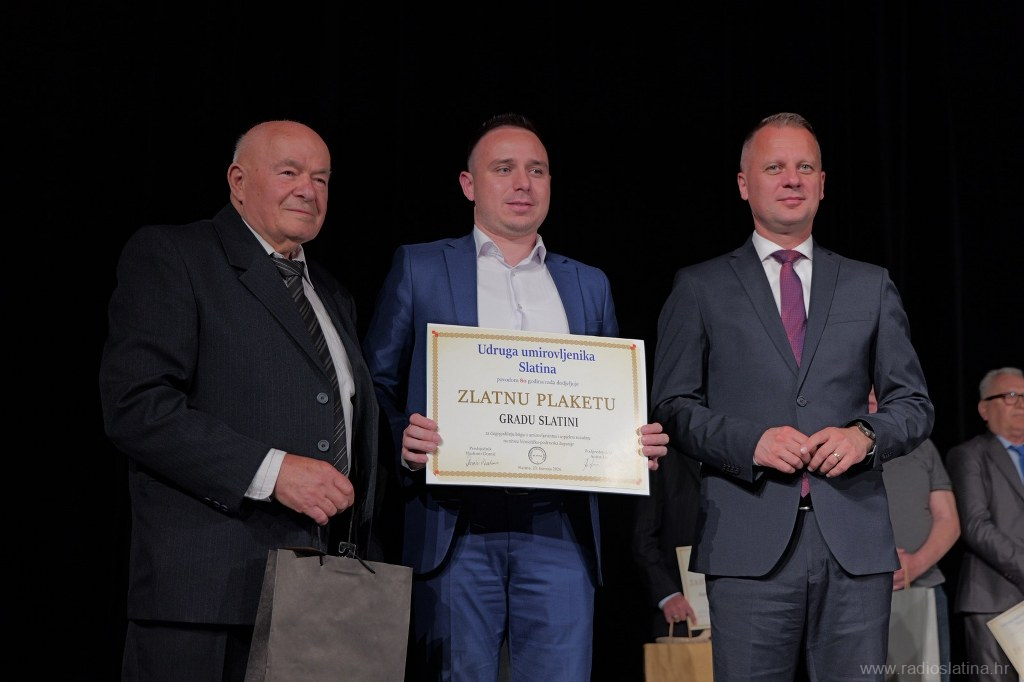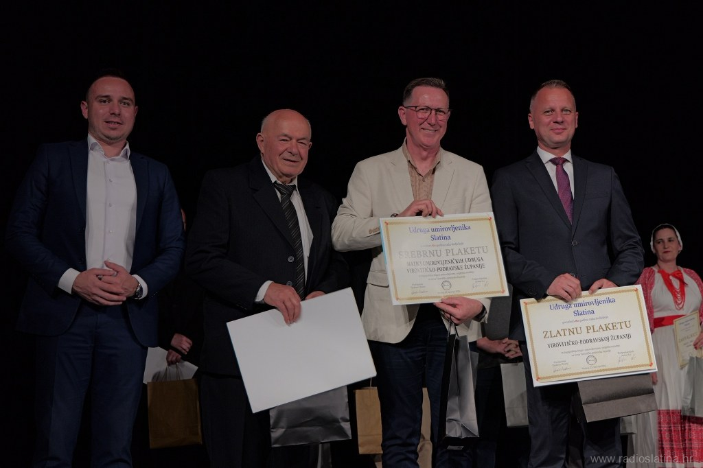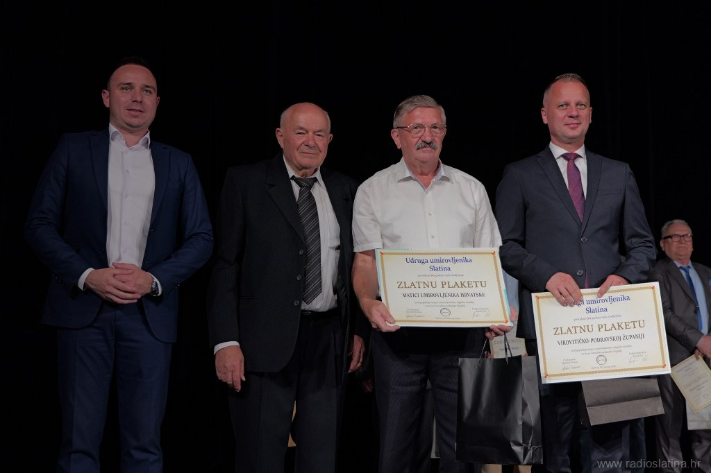 Poseban dio svečanosti bio je posvećen dodjeli zahvalnica i priznanja pojedincima, institucijama i partnerima koji su svojim radom i potporom pridonijeli djelovanju Udruge. Dodijeljene su i plakete – srebrna Matici umirovljeničkih udruga Virovitičko-podravske županije, te zlatne Gradu Slatini, Virovitičko-podravskoj županiji, Matici umirovljenika Hrvatske i Slatinskom informativnom centru čiji se direktor Robert Turkalj na kraju svečanosti obratio okupljenima u ime svih nagrađenih, zahvalivši se na priznanju. Tom je prigodom istaknuo važnost zajedničkog djelovanja u lokalnoj zajednici.
