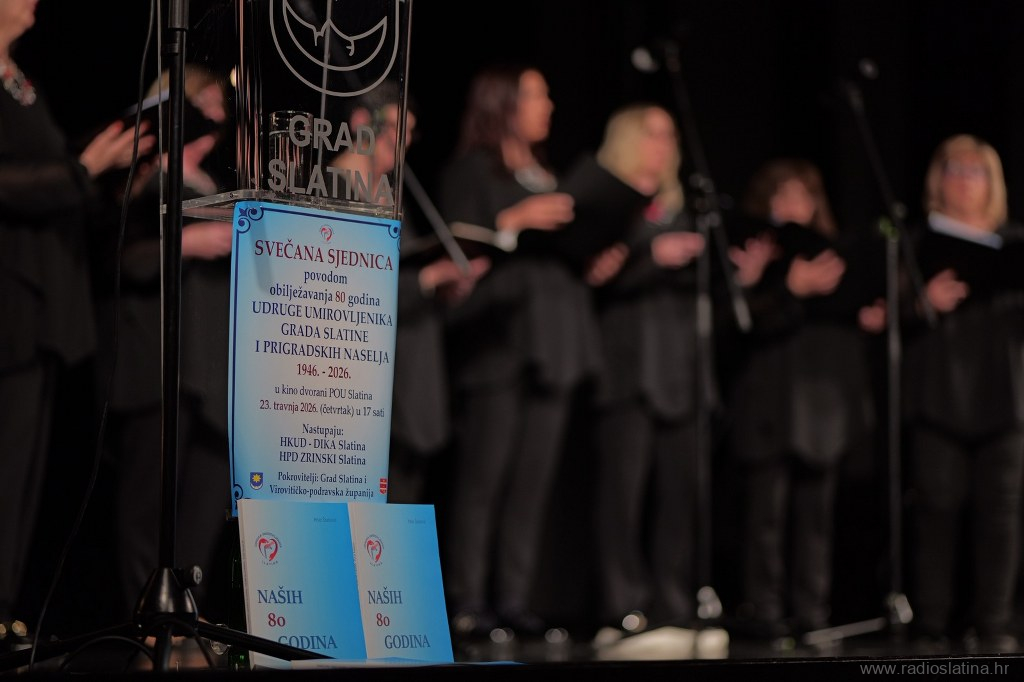 Danas (23. travnja) je u velikoj dvorani Pučkog otvorenog učilišta Slatina održana svečana sjednica povodom obilježavanja velikog jubileja – 80 godina postojanja i rada Udruge umirovljenika Slatina.