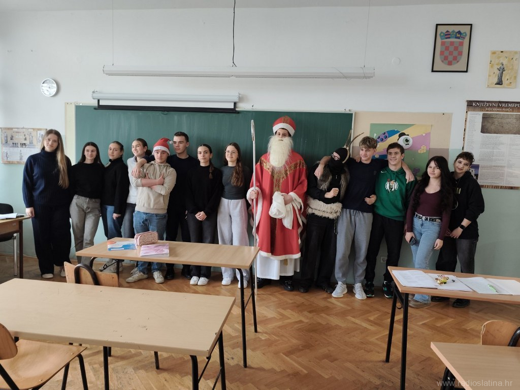 Ususret blagdanu Svetog Nikole i nadolazećem božićnom vremenu, u vedroj i razigranoj atmosferi, Srednju školu Marka Marulića Slatina u petak, 5. prosinca posjetili su Sveti Nikola i Krampus, tradicionalni glasnici darivanja i veselja.