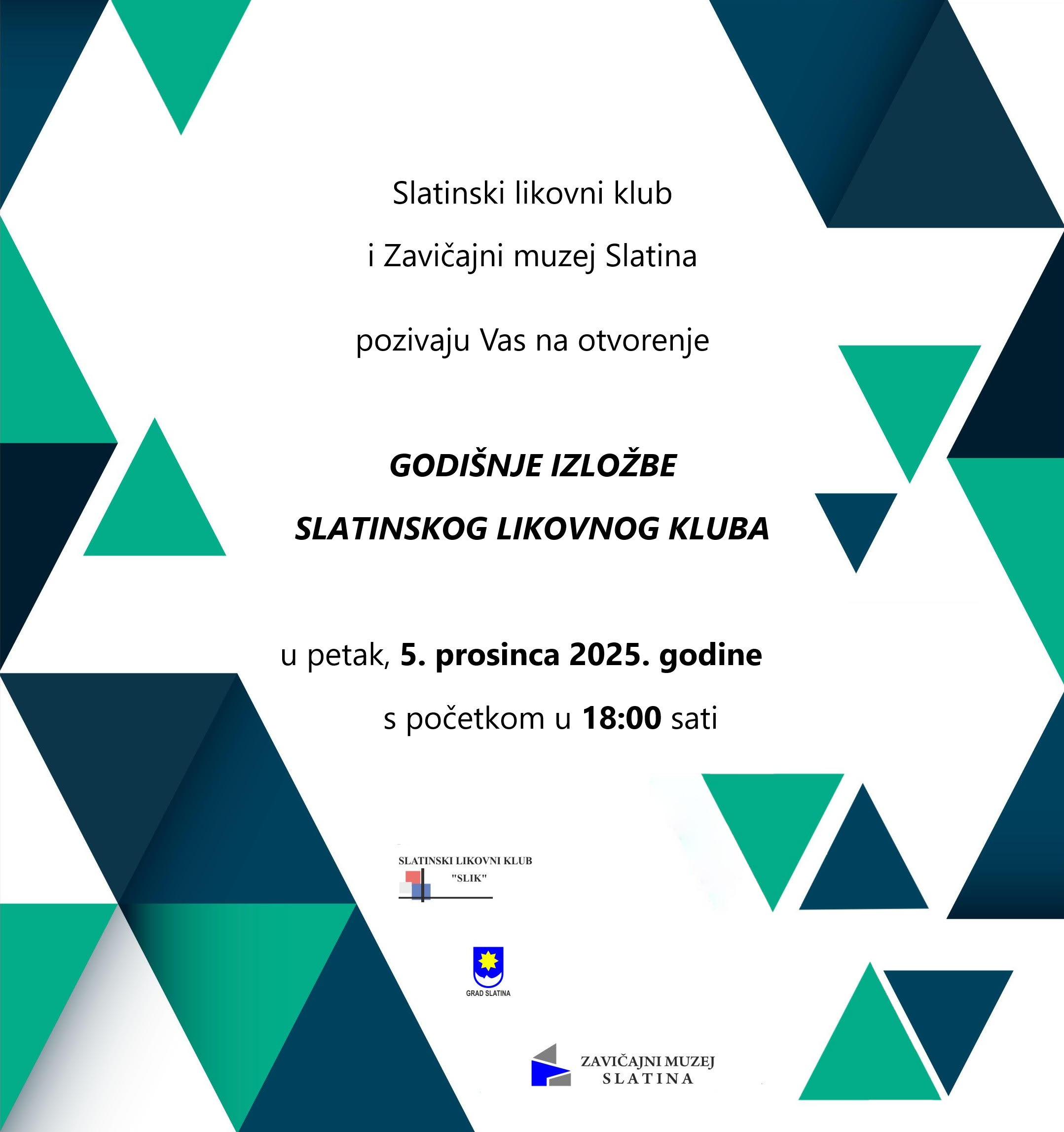 Slatinski likovni klub u suradnji sa Zavičajnim muzejom Slatina ove će godine ponovno predstaviti radove svojih članova na tradicionalnoj Godišnjoj izložbi. Otvorenje je najavljeno za petak, 5. prosinca 2025., u 18 sati u prostoru Zavičajnog muzeja.