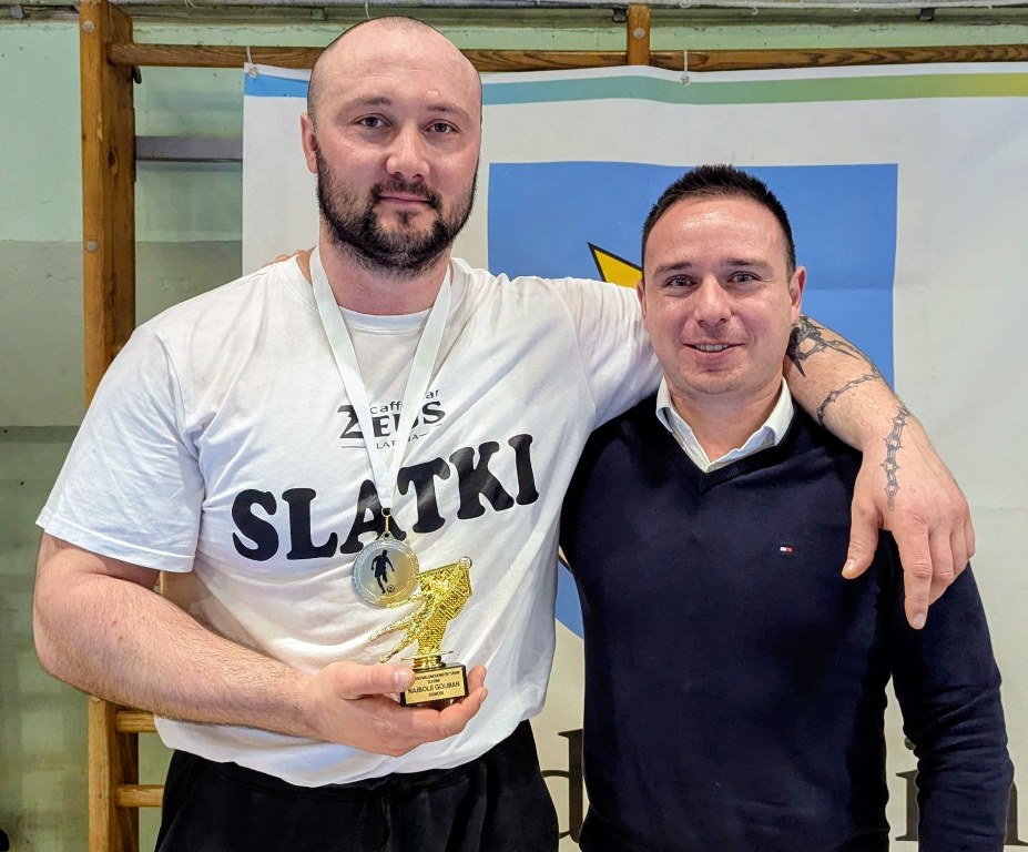 Nešto stariji dečki, oni veterani iz Đulovca, nakon ruleta penala protiv Pomalo burno su proslavili zasluženo treće mjesto. I jednima i drugima treba posebno čestitati, jer su ostavili i posljednji atom snage, iako se nije radilo o utakmici za zlato. A do najsjajnijeg metala stigli su Virovitičani, uzevši žezlo dojučerašnjim prvacima – Baksuzima Višnja građevinski materijal. Tim je jednostavno cijeli turnir bio od puno jačeg materijala, što se pokazalo i u tom finalnom ogledu. Mario Košorog je iz okreta „skinuo paučinu“, podsjetivši na svoje najbolje dane dovevši Tim vrlo brzo u prednost. Vratili su se Baksuzi na svoj prepoznatljiv način, brzom kombinatornom akcijom, gdje je loptu u mrežu samo morao usmjeriti Duspara. Veći dio susreta Tim je bio taj koji je napadao, dok su se Baksuzi branili. U takvoj konstelaciji snaga Premec je upisao nekoliko sjajnih intervencija, ali kod udarca jednog od ponajboljih aktera finala, Pelka, bio je potpuno nemoćan. Do konca su dočekali i Baksuzi jedan zicer, no čovjek kojem je ovo bilo deseto (!) finale zaredom na slatinskom turniru, računajući i seniorsku i veteransku kategoriju, Dragan Ostojić, taj je put bio neprecizan.