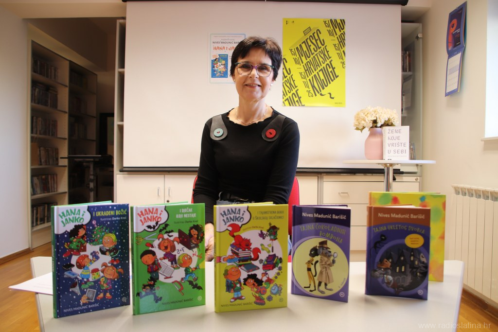 Budući da je upravo taj serijal knjiga popularan među najmlađim korisnicima Gradske knjižnice Viktora Žmegača, spisateljica je učenicima predstavila knjigu “Hana i Janko i tajanstvena buka u školskoj svlačionici”, kao i ostale iz tog ciklusa.