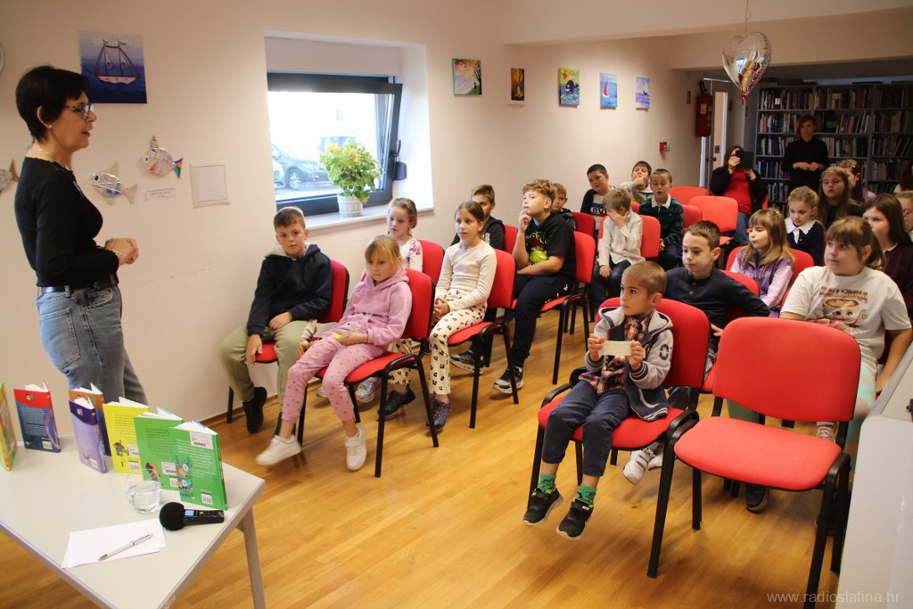 Ovoga puta u intimnoj atmosferi slatinske knjižnice učenici razredne nastave Osnovne škole Eugena Kumičića Slatina, odnosno područnih škola iz Novaka i Gornjeg Miholjca u pratnji učiteljica Biljane Jelenčić, Marinele Zrinščak Begovac, Gabrijele Baketa i Jasne Kizivat, imali su priliku pobliže upoznati spisateljicu, urednicu i dramaturginju Nives Madunić Barišić.