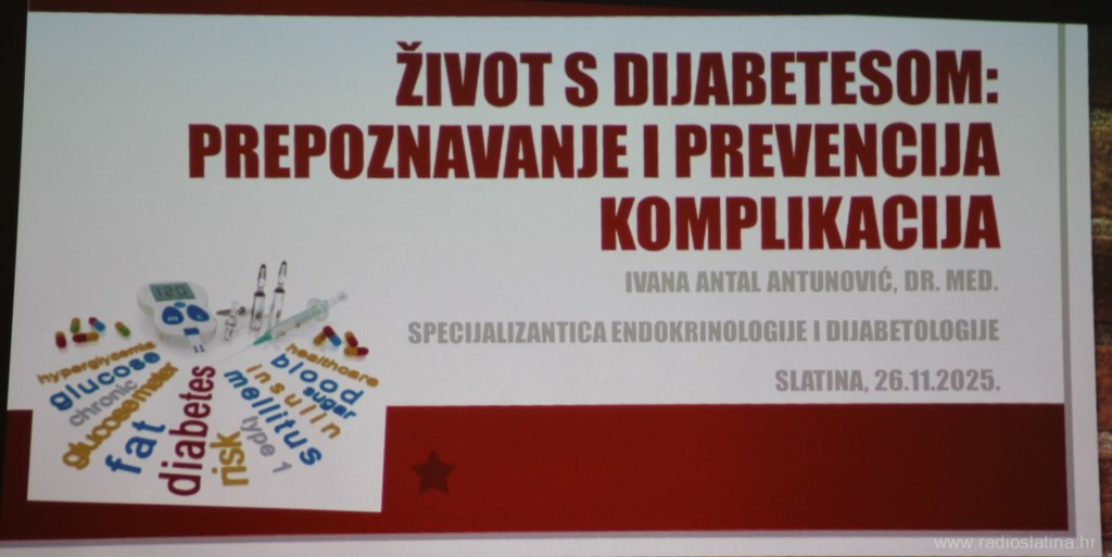 U organizaciji Dijabetičke udruge Slatina sinoć (srijeda) je u prostoru Gradske knjižnice Viktora Žmegača održano edukativno predavanje pod nazivom „Život s dijabetesom: prepoznavanje i prevencija komplikacija“, koje je privuklo velik broj članova udruge i građana Slatine.