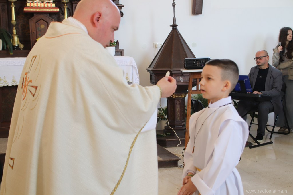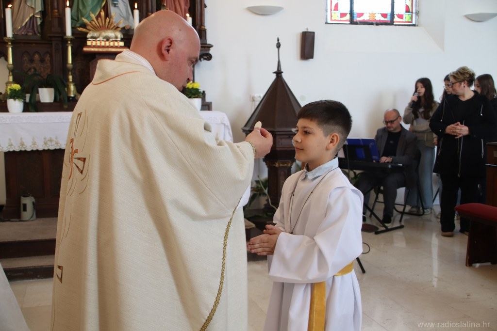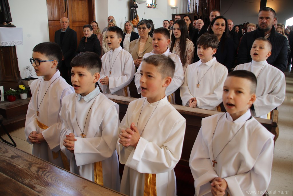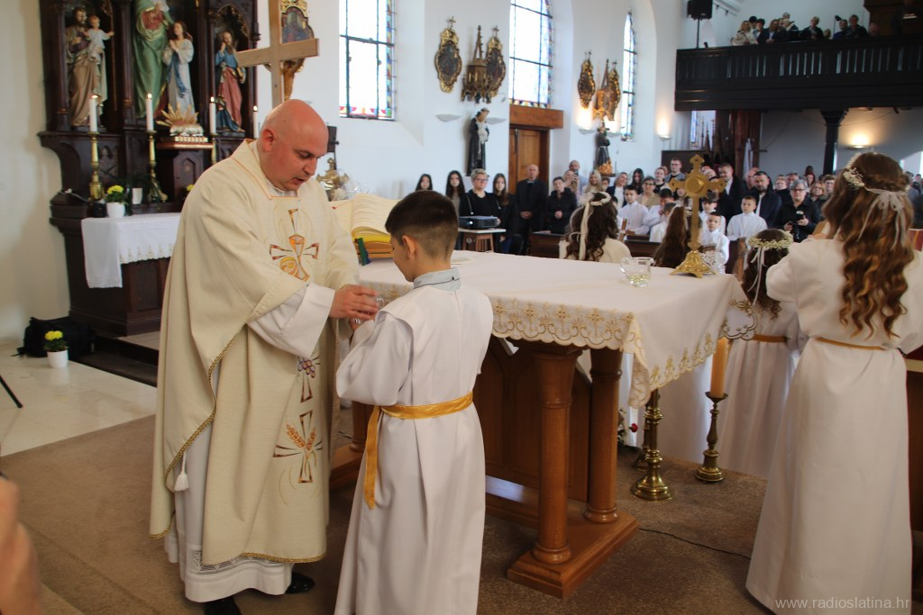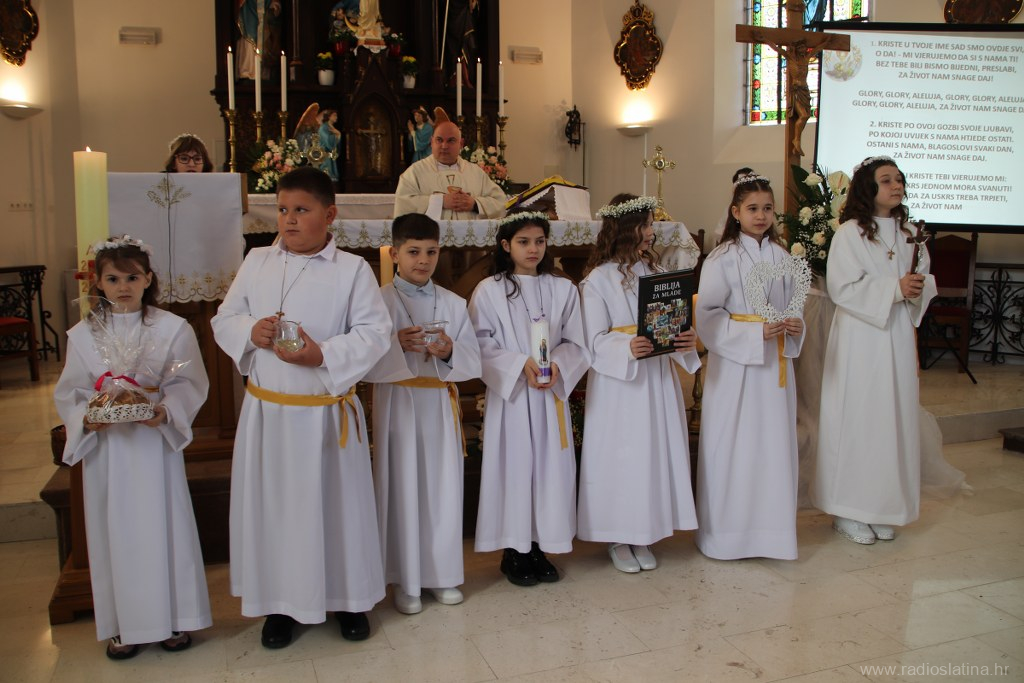 U ispunjenoj crkvi, u svečanom i molitvenom ozračju, po prvi je put pričest primilo 20 prvopričesnika. Svečano euharistijsko slavlje predvodio je novobukovački župnik i dekan Slatinskog dekanata, preč. Ivan Štivičić, koji je u svojoj nadahnutoj propovijedi posebno istaknuo važnost Isusove prisutnosti u životu vjernika po euharistiji.