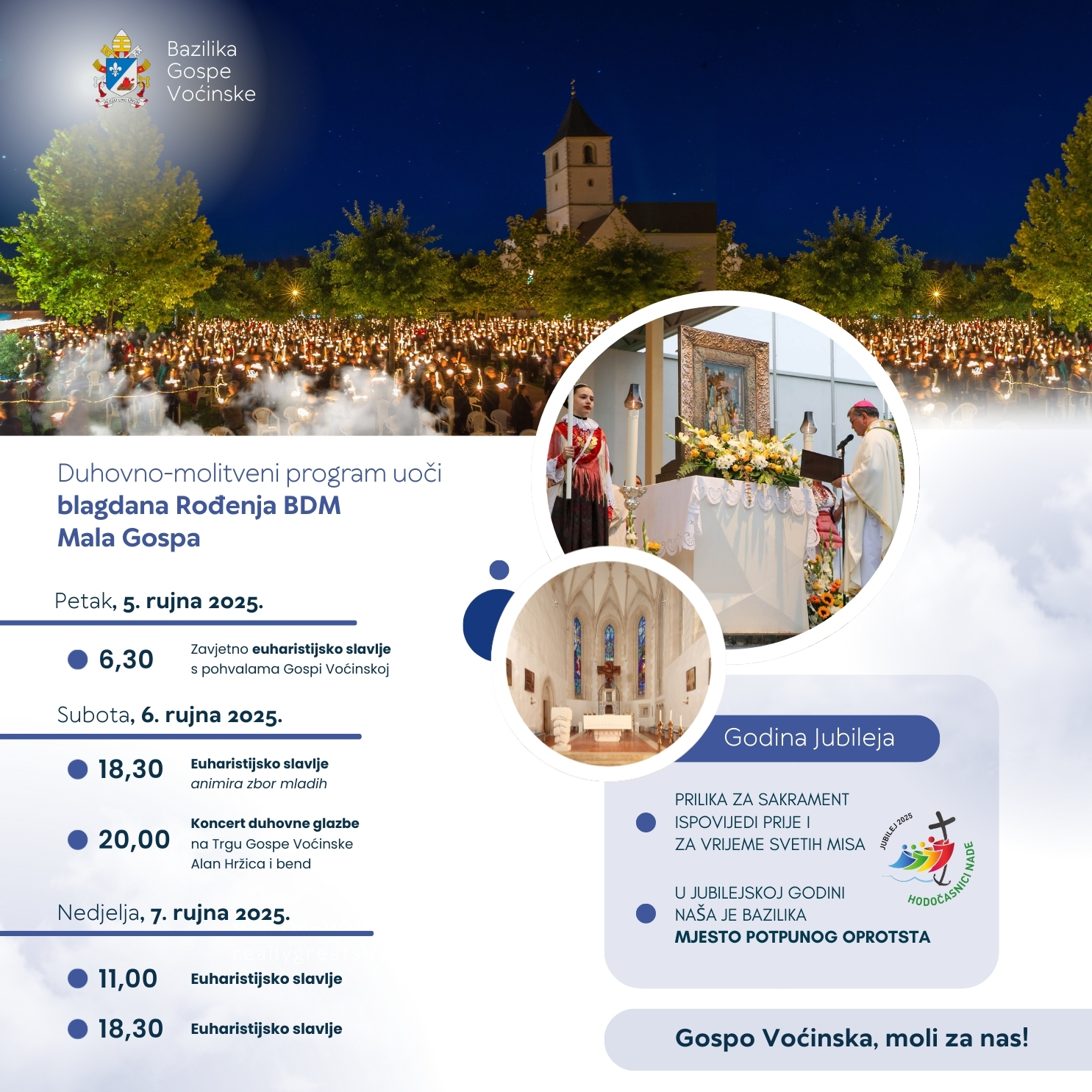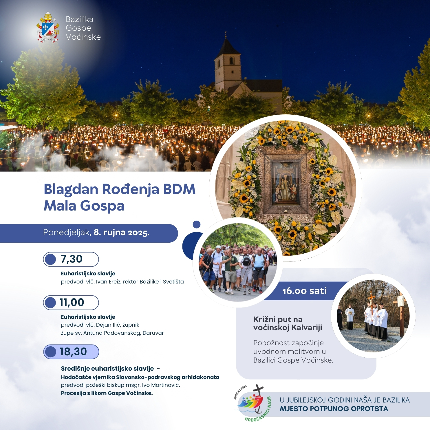 Na blagdan Rođenja Blažene Djevice Marija – Mala Gospa, u ponedjeljak, 8. rujna 2025., vjernici iz župa Slavonsko-podravskog arhiđakonata hodočaste u voćinsko Svetište.