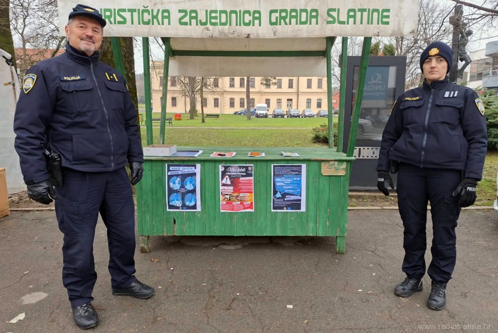 Policijski službenici Policijske postaje Slatina akciju su proveli danas (utorak) na Trgu sv. Josipa, kod središnjeg gradskog parka, gdje su postavili info-pult te dijelili građanima promidžbene materijale.