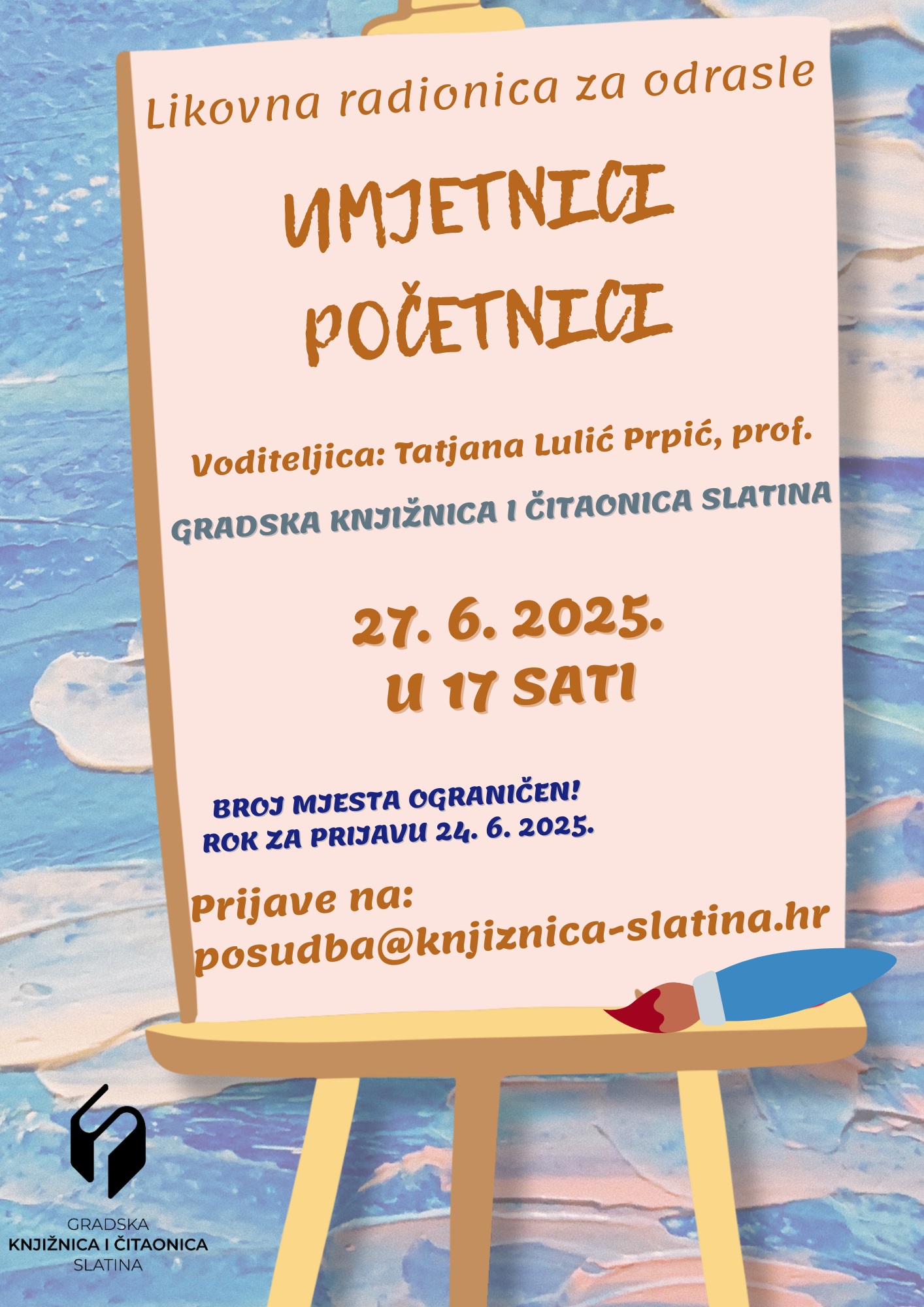 Bila je to prva radionica u ciklusu od četiri planirane likovne radionice za odrasle koje će se tijekom 2025. godine održati u organizaciji Gradske knjižnice i čitaonice Slatina, a spomenuti program dobio je i potporu Ministarstva kulture i medija.
