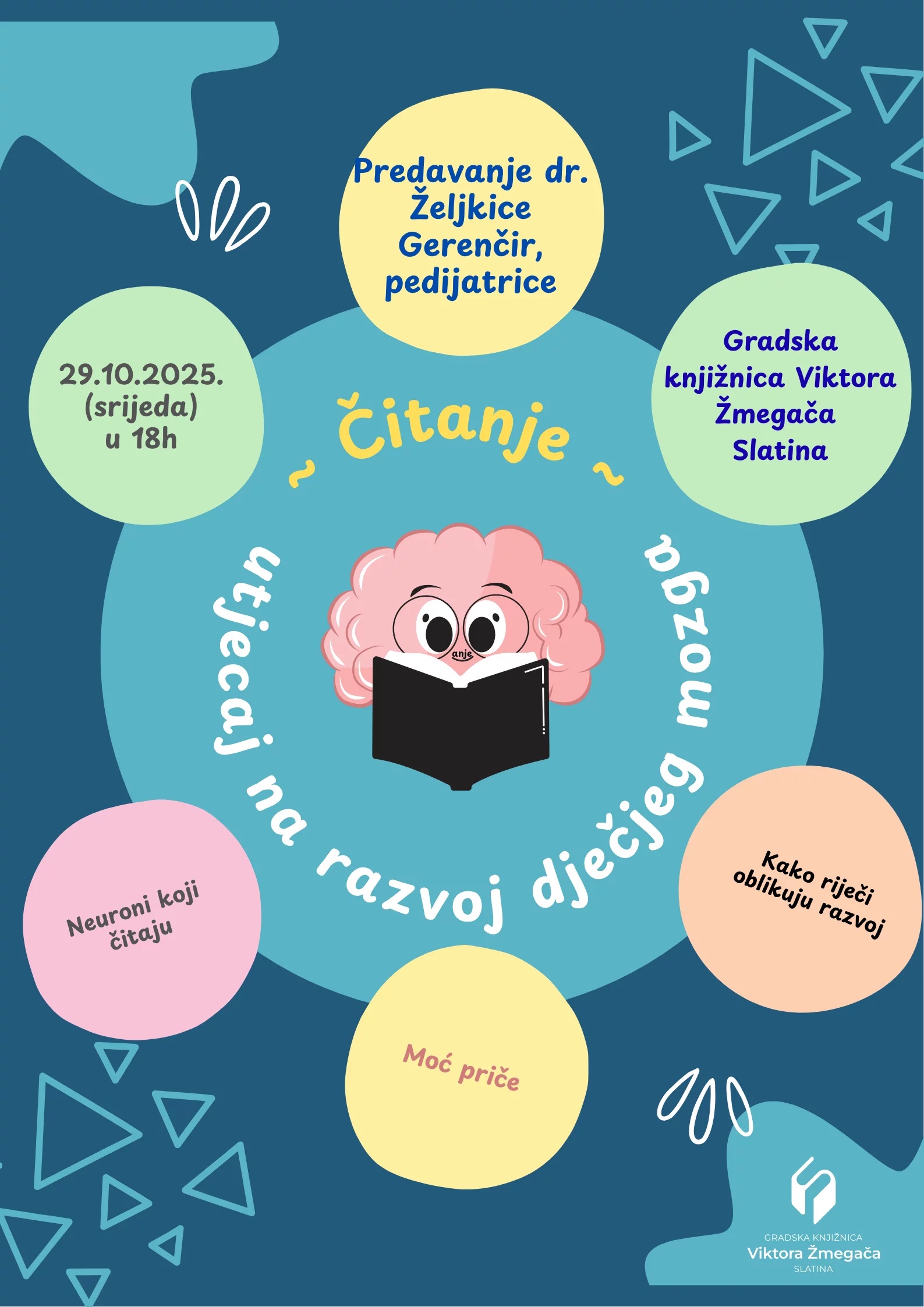 U slatinskoj Knjižnici 29. listopada predavanje dr. Željkice Gerenčir na temu „Čitanje- utjecaj na razvoj dječjeg mozga“.