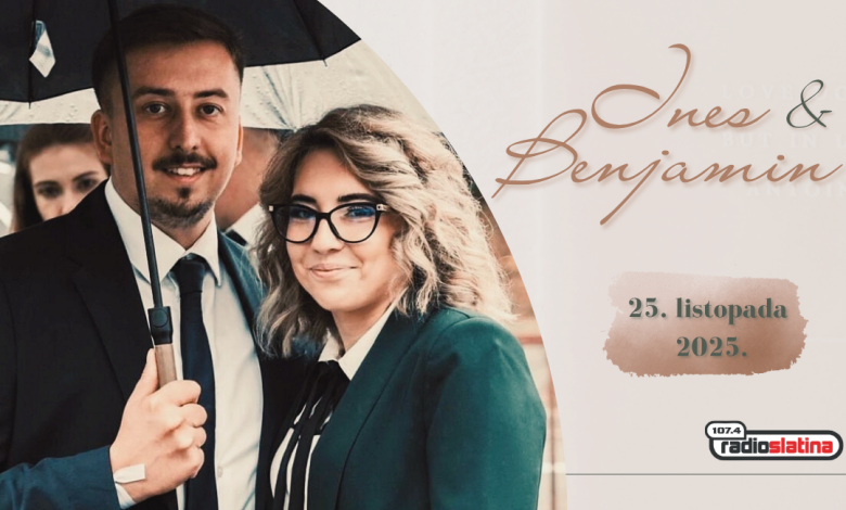 Iduća tri dana – u srijedu, četvrtak i petak (22., 23. i 24. listopada) – emisija “Čestitke i pozdravi” će biti posvećena mladencima Ines Jutrašnjik i Benjaminu Kroupi, koji će svoju ljubav okruniti brakom u subotu, 25. listopada 2025. godine, u crkvi bl. Ivana Merza u Slatini, s početkom u 16 sati.