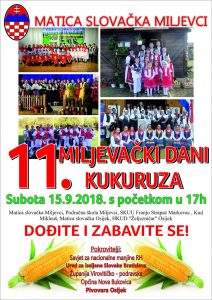 11. miljevački dani kukuruza ime je velike kulturne manifestacije koju će u subotu organizirati Matica Slovačka Miljevci.