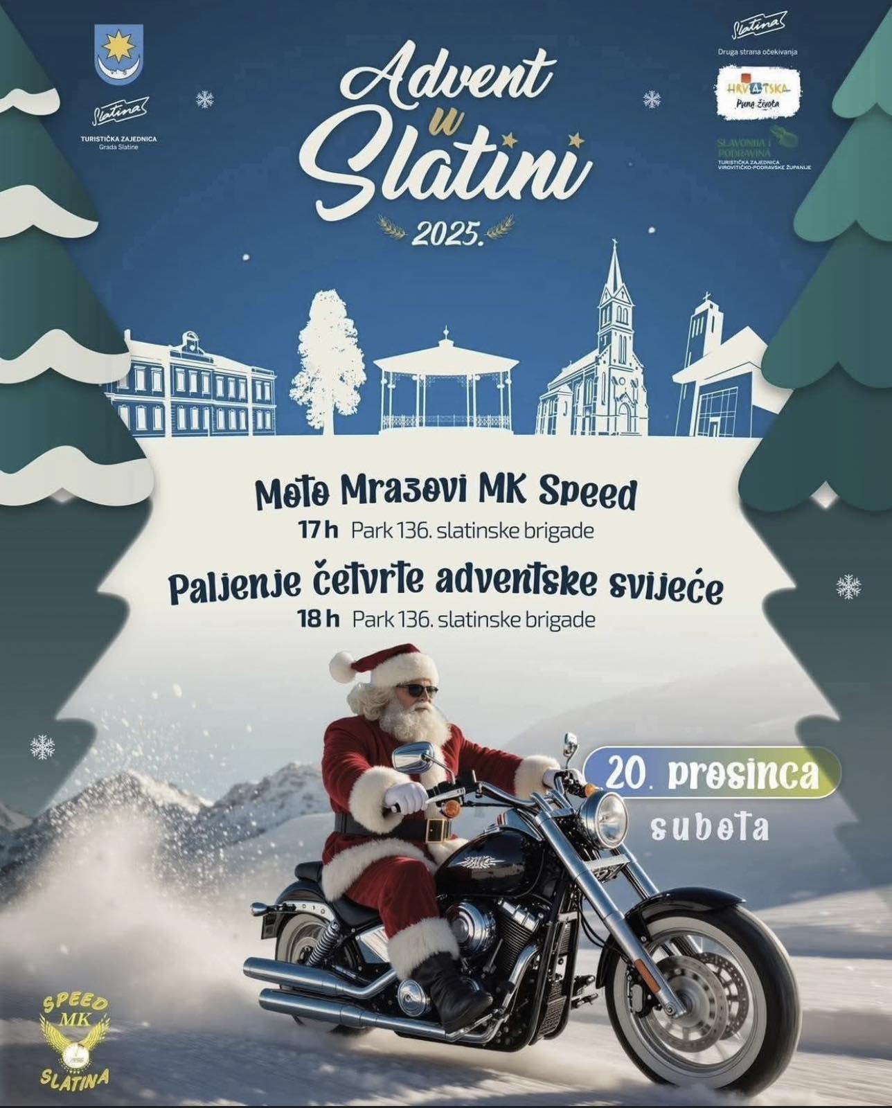 Naime u 17 sati u Adventski park stižu Moto mrazovi na svojim motorima i sa vrećama punih darova. Odmah po završetku tog susreta djece i članova Moto kluba Speed, u 18 sati bit će upaljena 4. adventska svijeća.