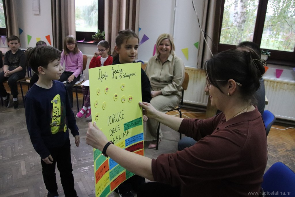 Područna škola Sladojevci djeluje s dvije učiteljice, Višnjom Bujanić i Katarinom Kokorić, te 14 učenika raspoređenih u dvije kombinirane skupine – prvi i treći te drugi i četvrti razred. Učiteljica Bujanić istaknula je kako je posjet gradonačelnika tradicionalni dio Dječjeg tjedna i prilika da se čuje dječji glas, a učenici svake godine s veseljem sudjeluju u njegovom obilježavanju.