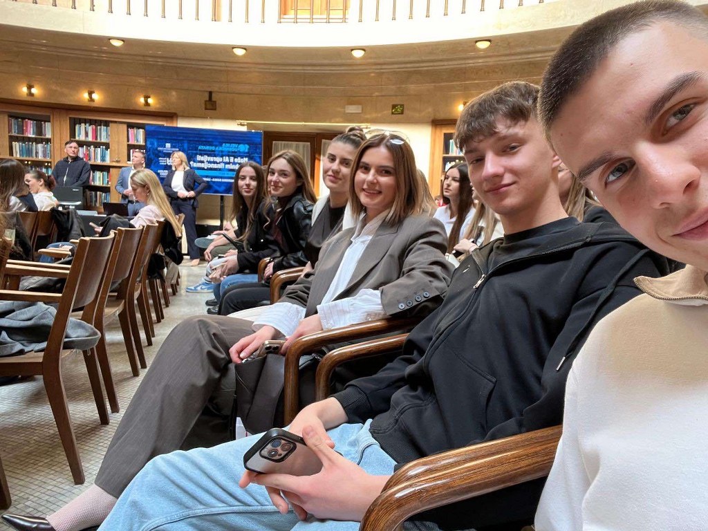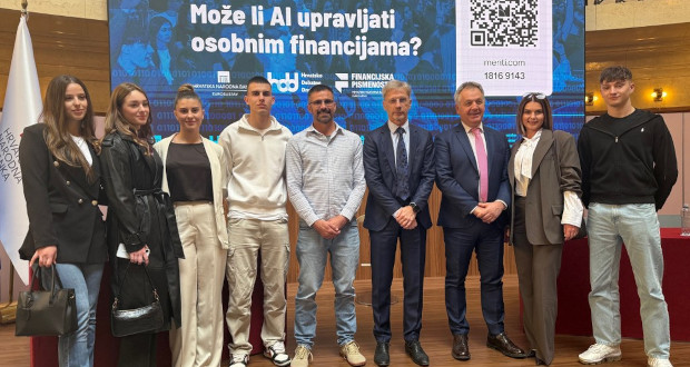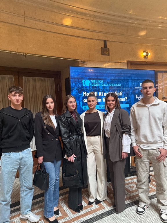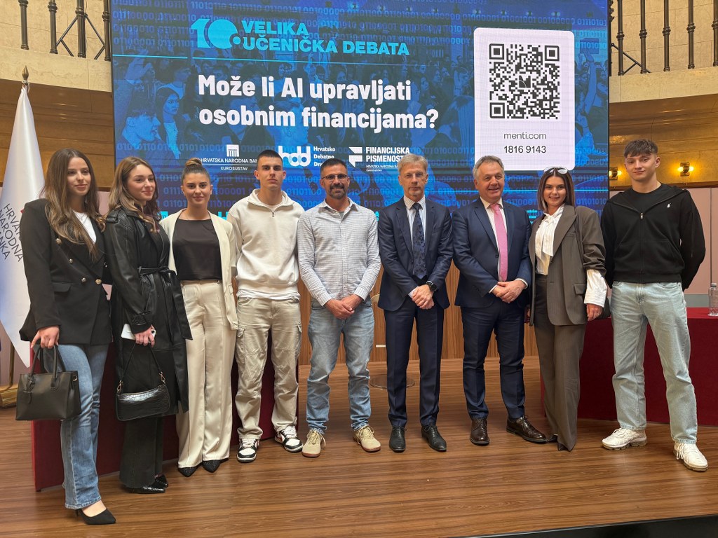 Učenici trećeg razreda ekonomskog usmjerenja Srednje škole Marka Marulića Slatina, Angela Dvojak, Lea Damjanović, Dora Kokorić, Dominik Grabovac, Alen Jakočić te profesorica Marina Grgić sudjelovali su na velikoj debati održanoj u Hrvatskoj narodnoj banci, gdje su raspravljali o jednoj od najaktualnijih tema današnjice – korištenju umjetne inteligencije u financijskom sektoru. Ovaj događaj okupio je učenike, stručnjake i mentore koji su zajedno razmjenjivali mišljenja o tome kako moderne tehnologije mijenjaju način na koji funkcioniraju banke i financijske institucije.