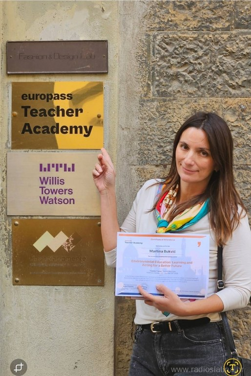 U razdoblju od 20. do 25. listopada 2025. godine, učiteljica fizike Martina Bukvić iz Osnovne škole Eugena Kumičića Slatina sudjelovala je na međunarodnom Erasmus+ stručnom usavršavanju „Odgoj za okoliš – učimo i djelujemo za bolju budućnost“, održanom u Firenci (Italija) u organizaciji European School Academy. Tečaj je okupio učitelje iz brojnih europskih zemalja s ciljem razvijanja novih pristupa odgoju i obrazovanju za održivi razvoj.