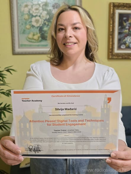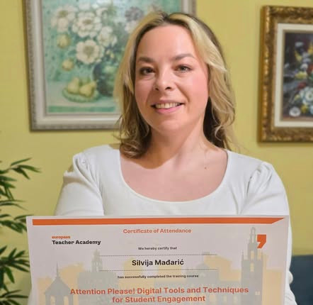 Učiteljica Osnovne škole Eugena Kumičića i Erasmus koordinatorica, Silvija Mađarić, sudjelovala je na međunarodnom stručnom usavršavanju pod nazivom „Attention please! Digital Tools and Techniques for Student Engagement“, koje se održalo u Sevilji, Španjolska. Tečaj je trajao šest dana, od 23. do 28. ožujka 2026. godine, u organizaciji Europass Teacher Academy, a okupio je ukupno 16 učitelja i ravnatelja iz različitih europskih škola.