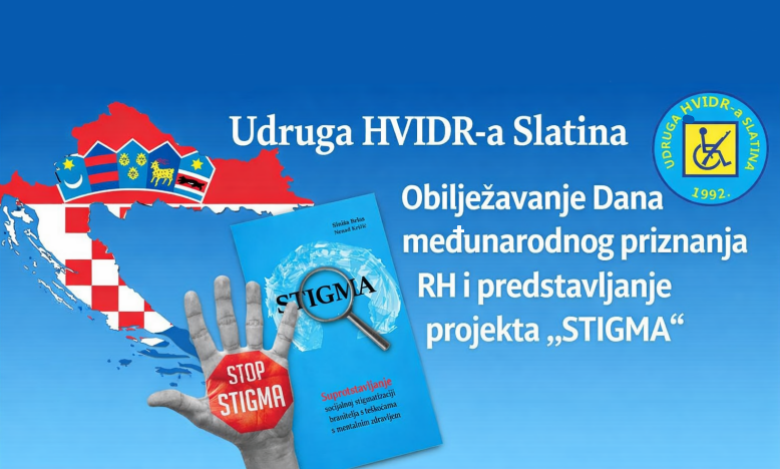 Udruga HVIDR-a Slatina poziva građane na obilježavanje Dana međunarodnog priznanja Republike Hrvatske te na predstavljanje projekta i publikacije pod nazivom „STIGMA – Suprotstavljanje socijalnoj stigmatizaciji branitelja s teškoćama s mentalnim zdravljem“.