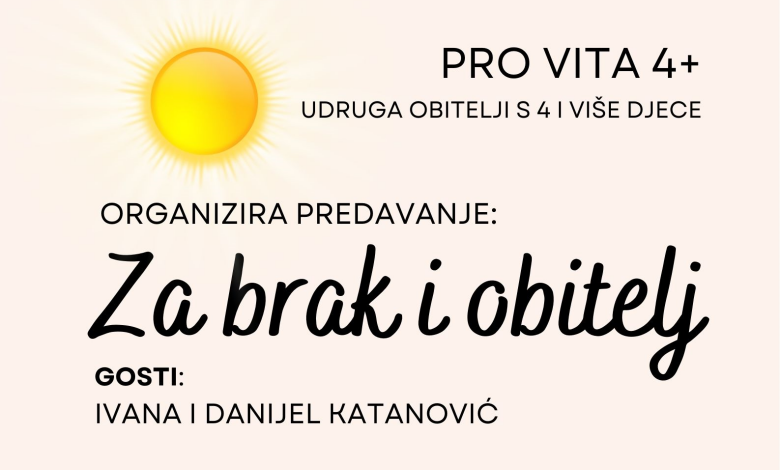 Udruga PRO VITA 4+ i ove godine priprema predavanje „Za brak i obitelj“, koje će 5. prosinca 2025. u 19 sati u Župi sv. Josipa u Slatini održati Ivana i Danijel Katanović.