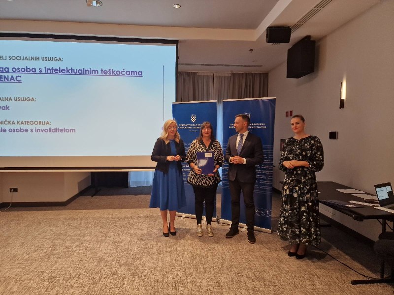 Jučer, 9. listopada potpredsjednica Udruge osoba s intelektualnim teškoćama Vretenac Slatina, Jelica Hržina sudjelovala je na svečanom uručivanju Ugovora o pružanju socijalnih usluga za 10 korisnika poludnevnog boravka.