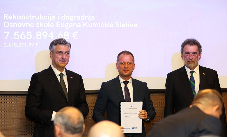 Predsjednik Vlade RH Andrej Plenković, uz ministra Radovana Fuchsa, u Dubrovniku je županu virovitičko-podravskom Igoru Androviću uručio ugovor za dogradnju OŠ Eugena Kumičića Slatina. Projekt je vrijedan 7.565.894,68 eura. Cilj ovog projekta je osigurati infrastrukturne i materijalne kapacitete za prelazak u jednu smjenu i provođenje cjelodnevne škole. OŠ Eugena Kumičića će tako dobiti nove učionice s pratećim sadržajima. Ovu, matičnu školu, trenutačno pohađa ukupno 430 učenika u 27 razrednih odjela. Nastava se odvija u dvije smjene, a nakon dogradnje ove škole, sva učenici, pohađat će školu u jednoj smjeni. OŠ Eugena Kumičića, izgrađena je 1983. godine, i ovo će biti najznačajniji investicijski zahvat od tada.
