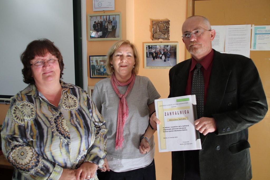 Na samom kraju zaslužnim članovima uručene su diplome za višegodišnju apstinenciju, kao i zahvalnice za aktivan i nesebičan rad.