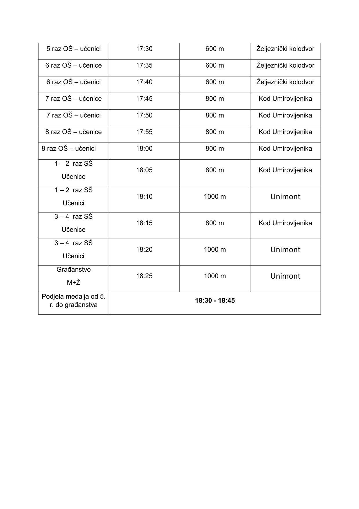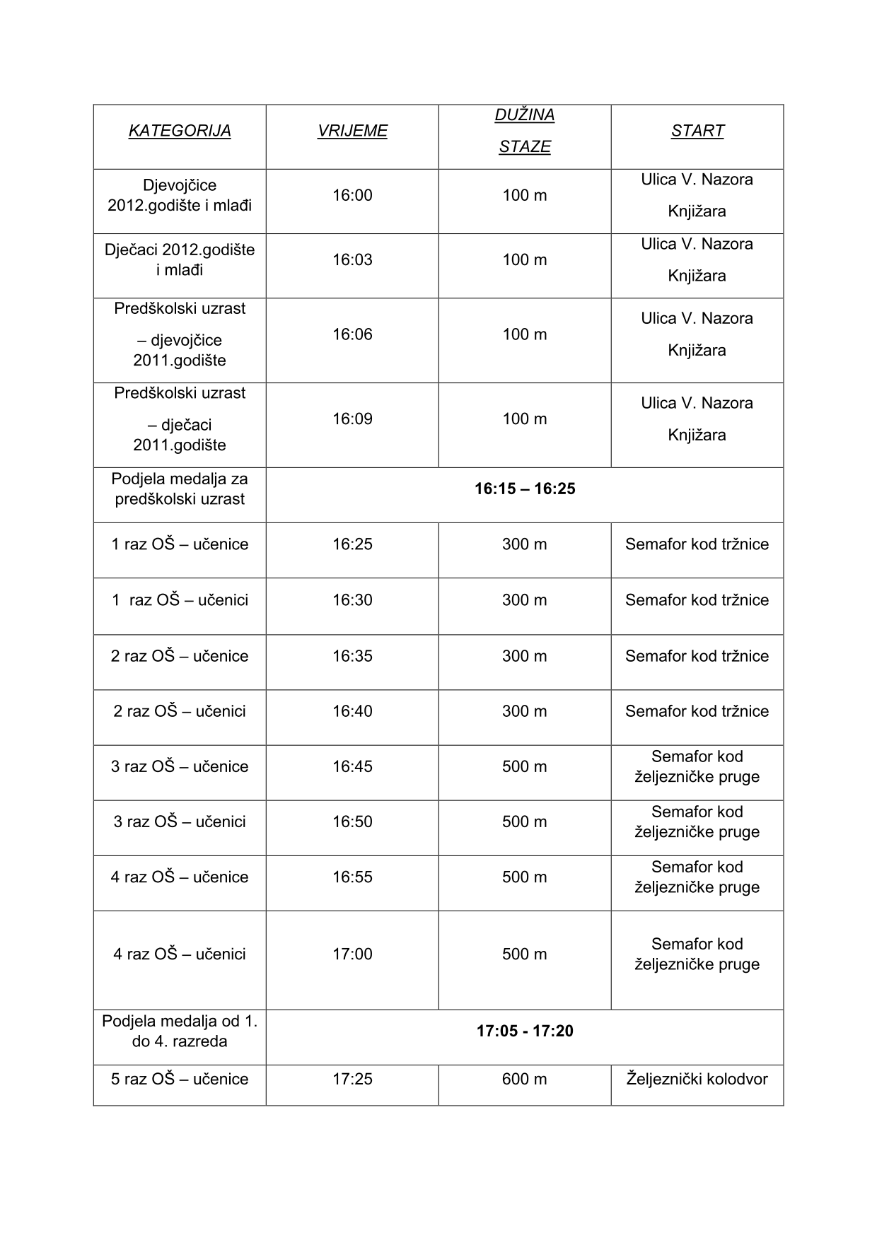 - Uručenje medalja predškolske dobi je odmah poslije utrka