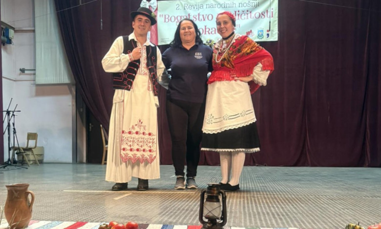 U organizaciji Kulturno-umjetničkog društva ”Matija Gubec”, u subotu je u Donjem Miholjcu održana 2. revija narodnih nošnji ”Bogatstvo različitosti Šokadije”, koja je i ove godine okupila brojne ljubitelje tradicijske baštine i folklora iz cijele Slavonije i Baranje. Manifestacija je pokrenuta prošle godine kao dugogodišnja želja KUD-a ”Matija Gubec” Donji Miholjac, a ima za cilj čuvanje, prezentaciju i popularizaciju izvorne i rekonstruirane narodne nošnje te tradicijskog tekstilnog rukotvorstva slavonskog kraja. Revija je i ove godine bila natjecateljskog karaktera, a na pozornici je svoje narodne nošnje ponosno predstavilo 20 sudionika iz 10 kulturno-umjetničkih društava i deset slavonskih mjesta, a među njima je nošnju predstavo i KUD ”Podravina” Čađavica. Valentina Kokorić i Luka Predrevac predstavili su žensku i mušku čađavačku narodnu nošnju ispred stručnog žirija. Iako nisu osvojili nagrade za prva tri mjesta, dobili su posebnu pohvalu za izniman trud u očuvanju tradicijske nošnje i kulturnog nasljeđa te ponudu za buduću suradnju. – Valentina je nosila oplećak iz 1892. godine, godina je utkana na rukav, a ni suknja, kao ni Lukin fertun (pregača), nije puno novijeg datuma i obiteljska su nasljeđa, kao i većina ostalih dijelova nošnje koju su nosili – rekli su iz KUD-a ”Podravina” Čađavica. (adf; Foto: KUD ”Podravina” Čađavica)