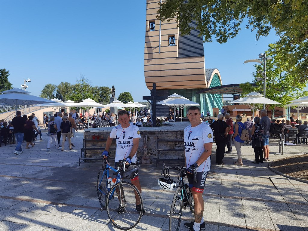 Po dolasku u Voćin sudionike biciklističkog hodočasničkog maratona dočekali su vlč. Ivan Ereiz, rektor Svetišta Gospe od Utočišta u Voćinu, te Darko Božičković i Ivica Đuzel, predsjednik i dopredsjednik Udruge dragovoljaca i veterana Domovinskog rata Ogranak Voćin.