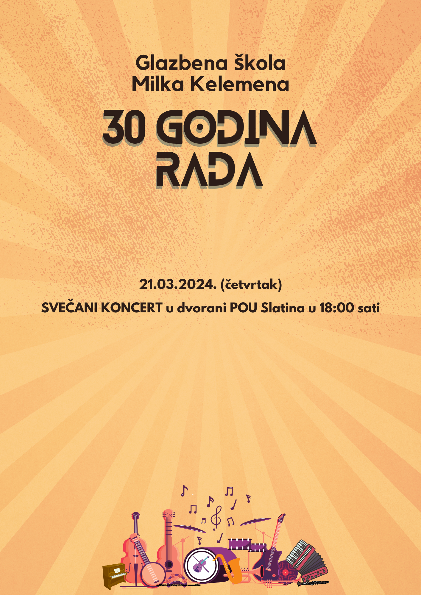 Velikim svečanim koncertom 21. ožujka Glazbena škola Milka Kelemena Slatina proslavlja 30. obljetnicu rada