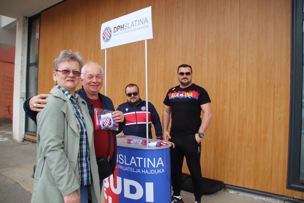Splitski Hajduk je klub s najvećim brojem članova u Hrvatskoj. Tu svoju odanost svome jedinom klubu navijači diljem Hrvatske, ali i cijelog svijeta, između ostalog potvrđuju učlanjenjem odnosno plaćanjem godišnje članarine. I Slatina ima svoju navijačku podružnicu Hajduka, a koju godinama vodi Robert Hodak. Društvo prijatelja Hajduka Slatina upravo tih posljednjih nekoliko godina bilježi veliku ekspanziju barem što se tiče broja članstva (132) i organizacije raznih društvenih događaja. Tako su danas (29.3.) Robi i hajdukovci priredili još jednu, inače treću ove godine, akciju učlanjenja novih članova u veliku hajdučku obitelj koja u ovim trenucima broji 106 723 članova. U tu nezamislivo veliku brojku stiže i novih 15 članova koji su ljubav biloj boji dokazali danas na prigodnom štandu DPH Slatina. Osim učlanjenja svako je mogao kupiti i prigodan šal s obilježjima slatinske hajdučke udruge. Prikupljeni iznos od donacija za šalove namijenjen je upisu DPH Slatina u tematski park ”Za sva vrimena” koji se nalazi na Poljudu.
