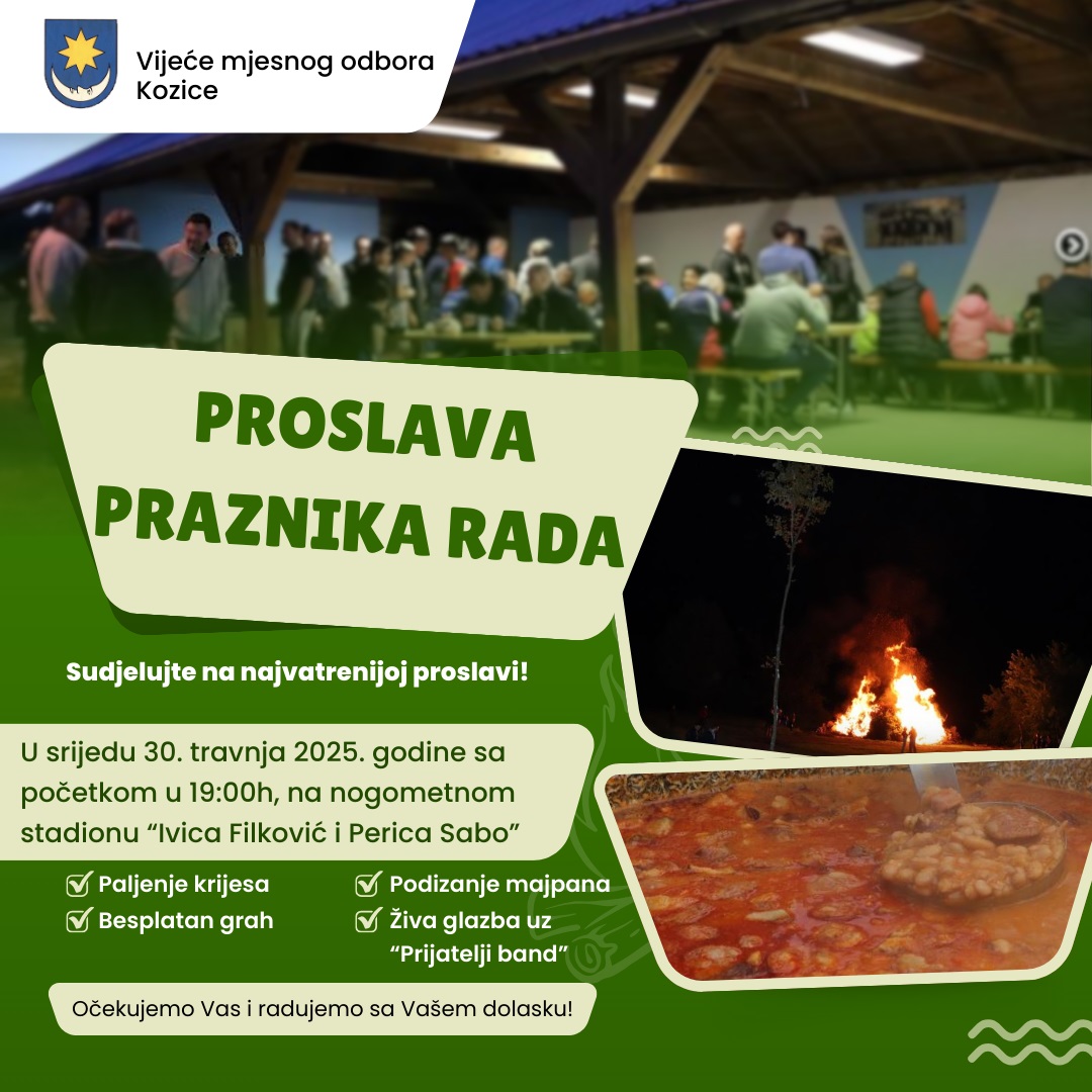Vijeće mjesnog odbora Kozice poziva na tradicionalnu proslavu Praznika rada u srijedu, 30. travnja