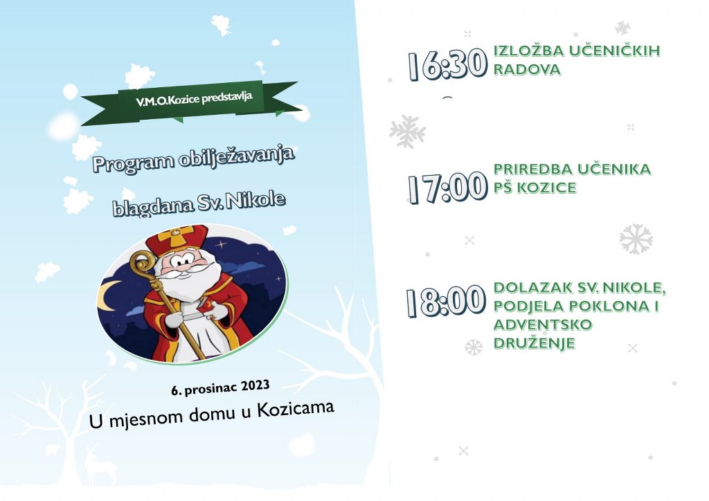 Vijeće mjesnog odbora Kozice u suradnji s Područnom školom Kozice u srijedu, 6. prosinca priprema program obilježavanja blagdana sv. Nikole u Kozicama.