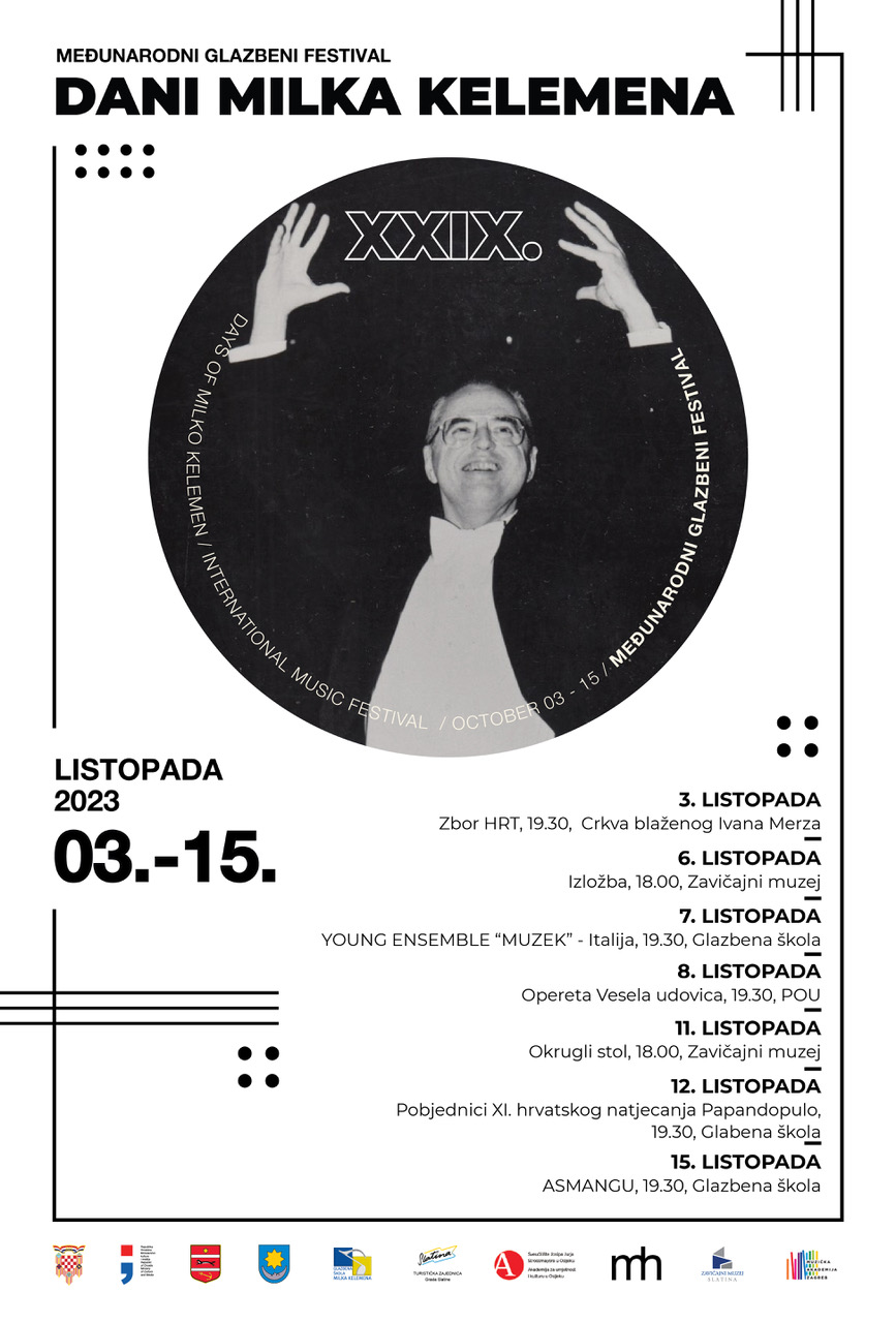 - listopada 2023. SUBOTA u 19.30 – Koncertna dvorana Glazbene škole Milka Kelemena u Hrvatskom domu u Slatini