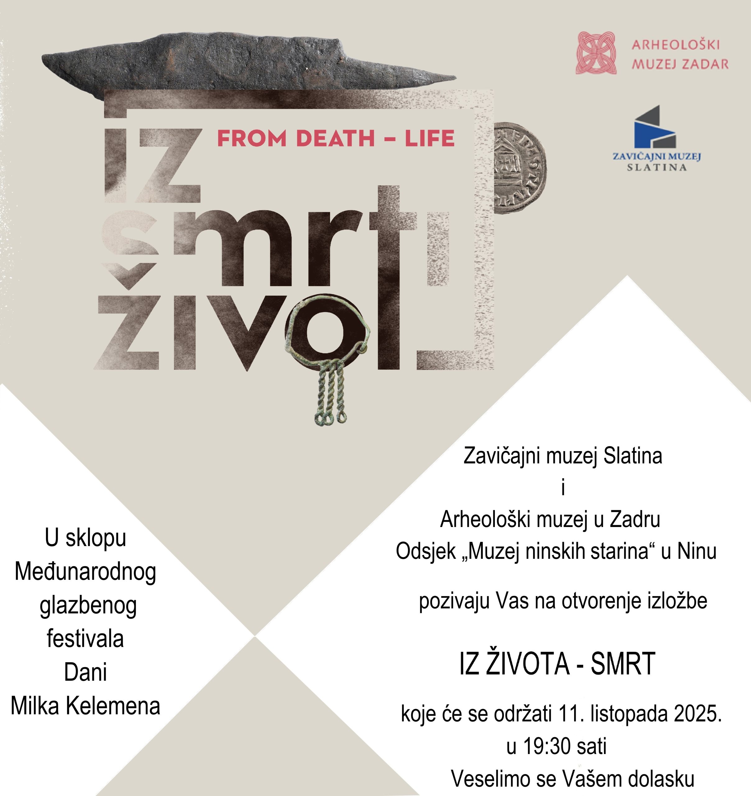 U sklopu Međunarodnog glazbenog festivala Dani Milka Kelemena Zavičajni muzej Slatina i Arheološki muzej u Zadru – Odsjek „Muzej ninskih starina“ u Ninu pripremaju izložbu „Iz smrti – život“.