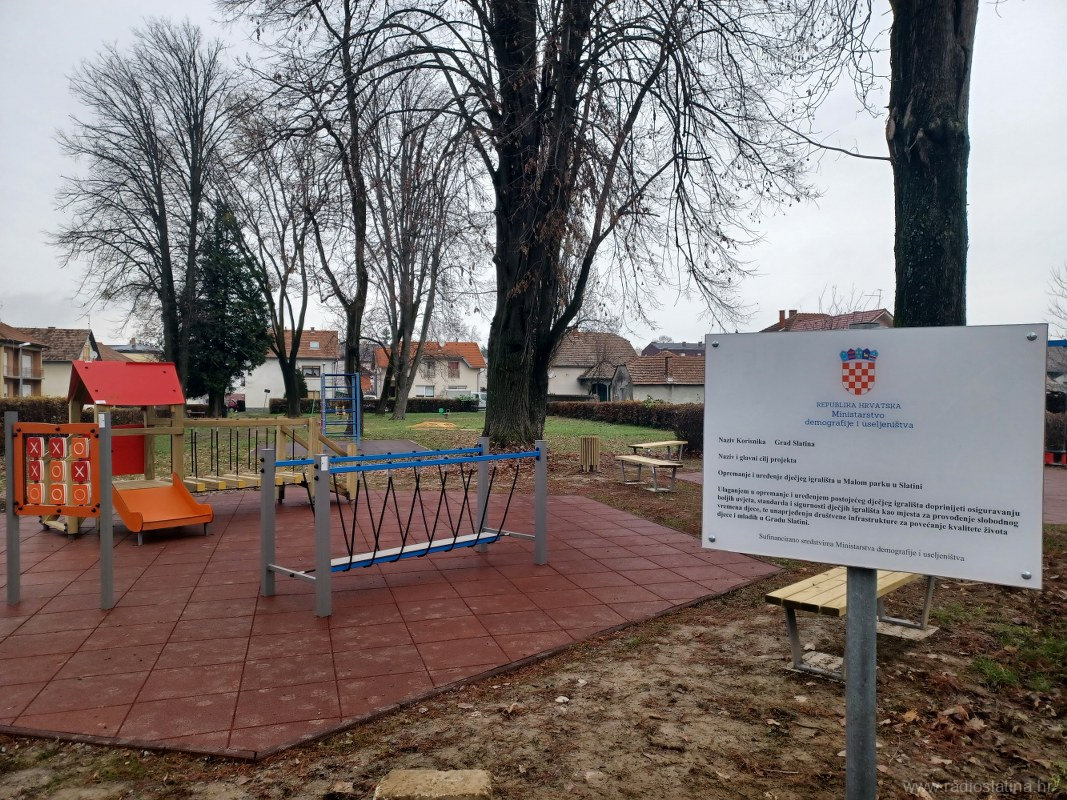 Grad Slatina uspješno je priveo kraju projekt „Opremanje i uređenje dječjeg igrališta u Malom parku u Slatini“ proveden u okviru Poziva za dodjelu bespovratnih sredstava „Dostupnost kvalitetnih i priuštivih sadržaja za djecu u lokalnim zajednicama kroz opremanje i uređenje igrališta za djecu“. Projekt je sufinanciran sredstvima Ministarstvo demografije i useljeništva Republike Hrvatske.