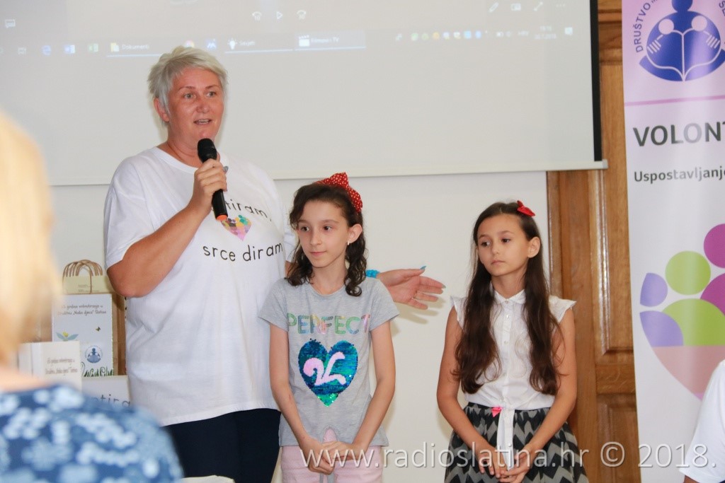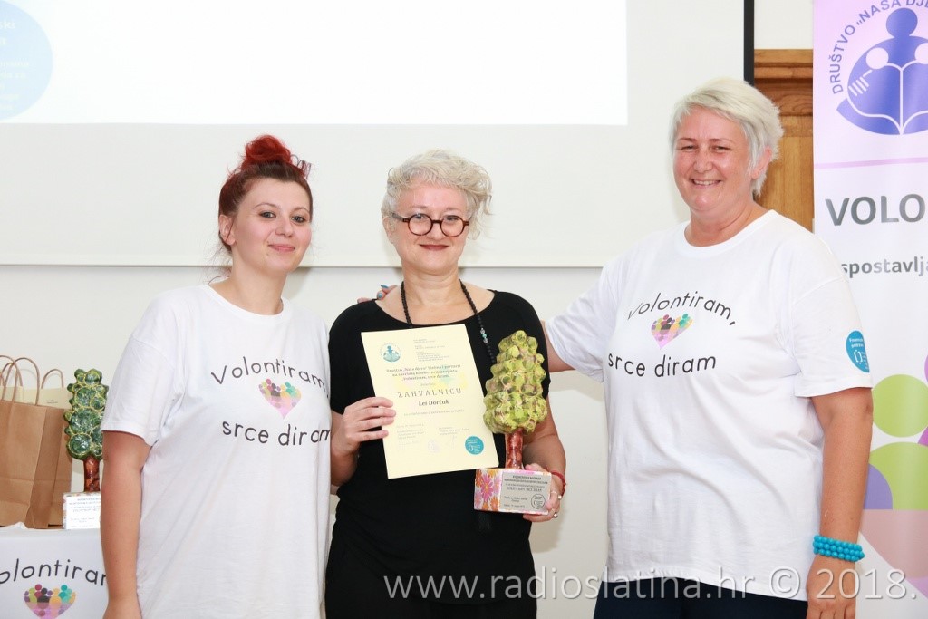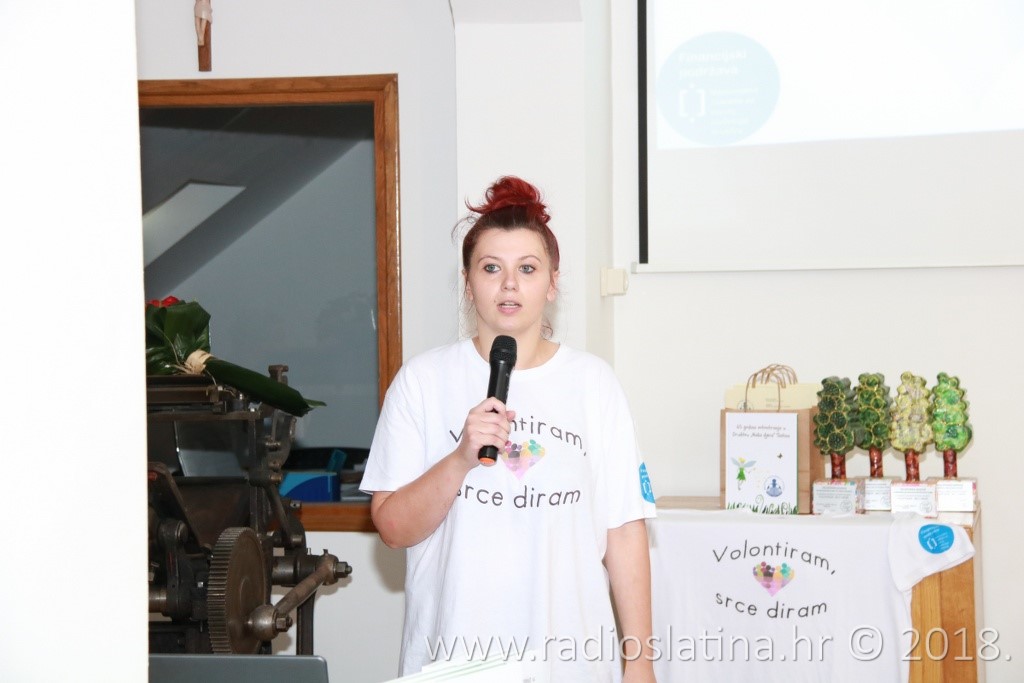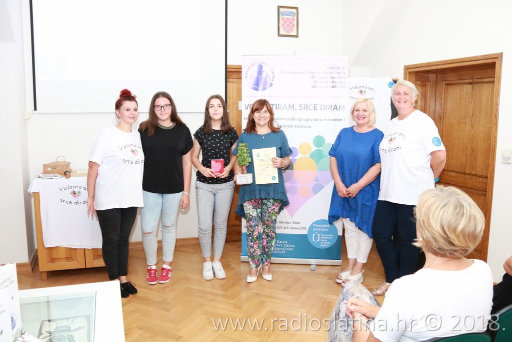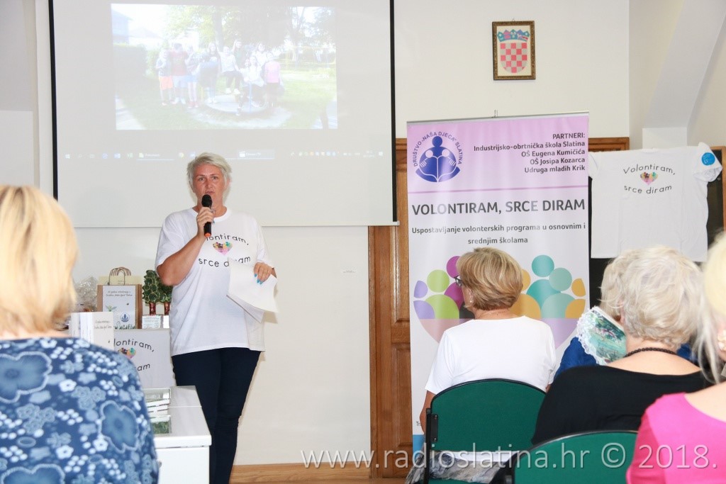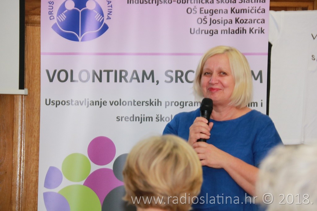 Provedbu projekta, čiji idejni začetnik je Jasenka Plantak iz Udruge mladih „KRIK“, predstavila je kratkom prezentacijom njegova koordinatorica Julijana Pavlešić. Prema njezinim riječima, projekt je sadržavao niz aktivnosti: osnivanje 3 volonterska kluba i edukaciju 45 učenika u školama partnerima, edukaciju voditelja volonterskih klubova, radionice „upcyclinga“, organiziranje volontera za vršnjačku pomoć, organiziranje volontera za volontiranje u domu za starije i nemoćne, organiziranje volonterskih akcija prema idejama učenika, uključivanje šire zajednice u akciju „Hrvatska volontira“, izložbu radova, izradu monografije “65 godina volontiranja u Društvu Naša djeca Slatina”….