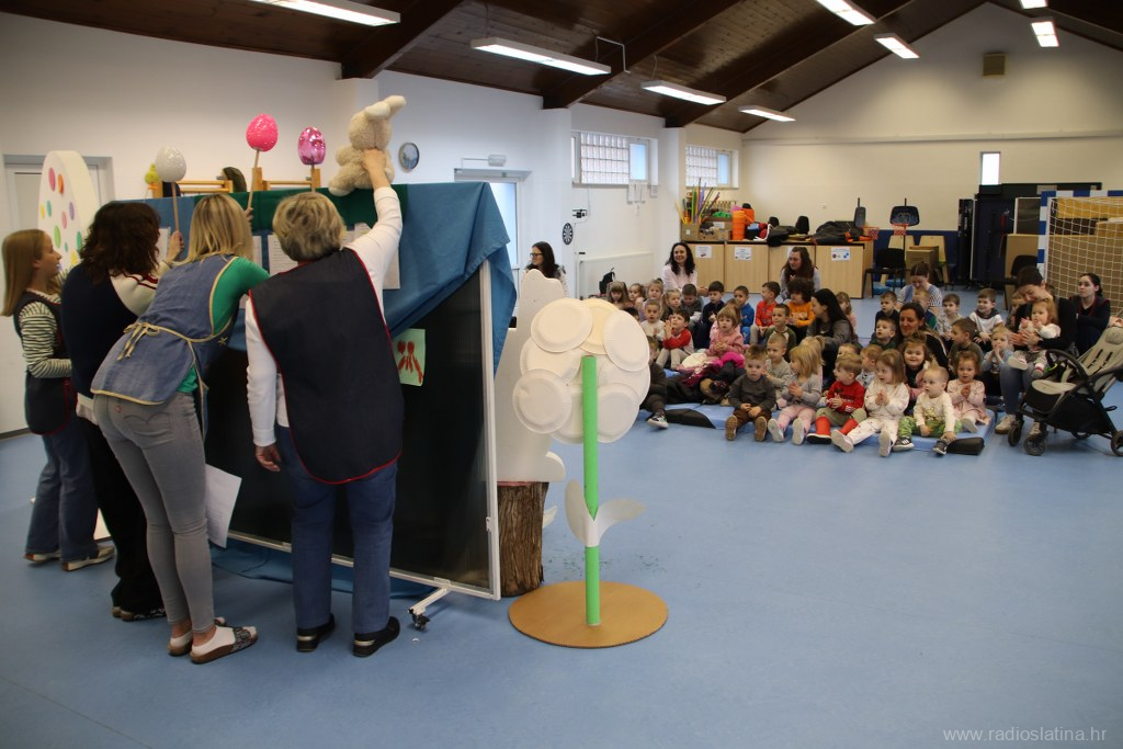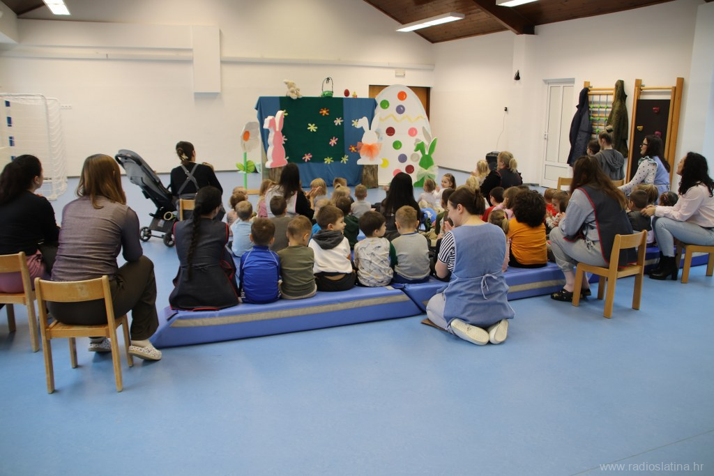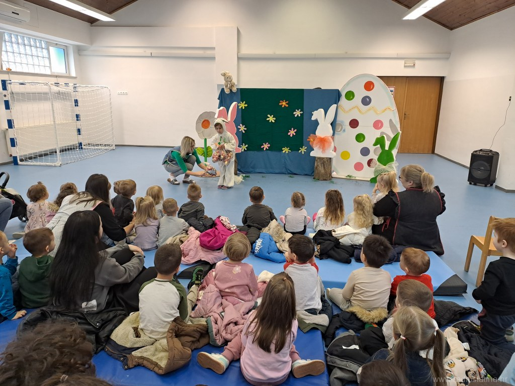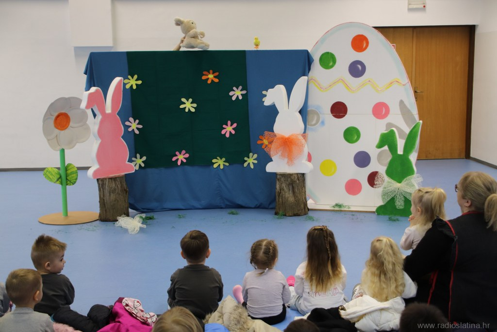 U predstavi su sudjelovale skupine Pahuljice, Bubamare, Zvjezdice, Ježići, Pande i Suncokreti sa svojim odgojiteljicama. Djeca su s velikim veseljem pratila lutkarske likove – Zeku, Pile i Pisanice – te zajedno s njima radosno zapjevala pjesmice Zeko hop, Šapice mi zeko daj i Uskrsni zeko.