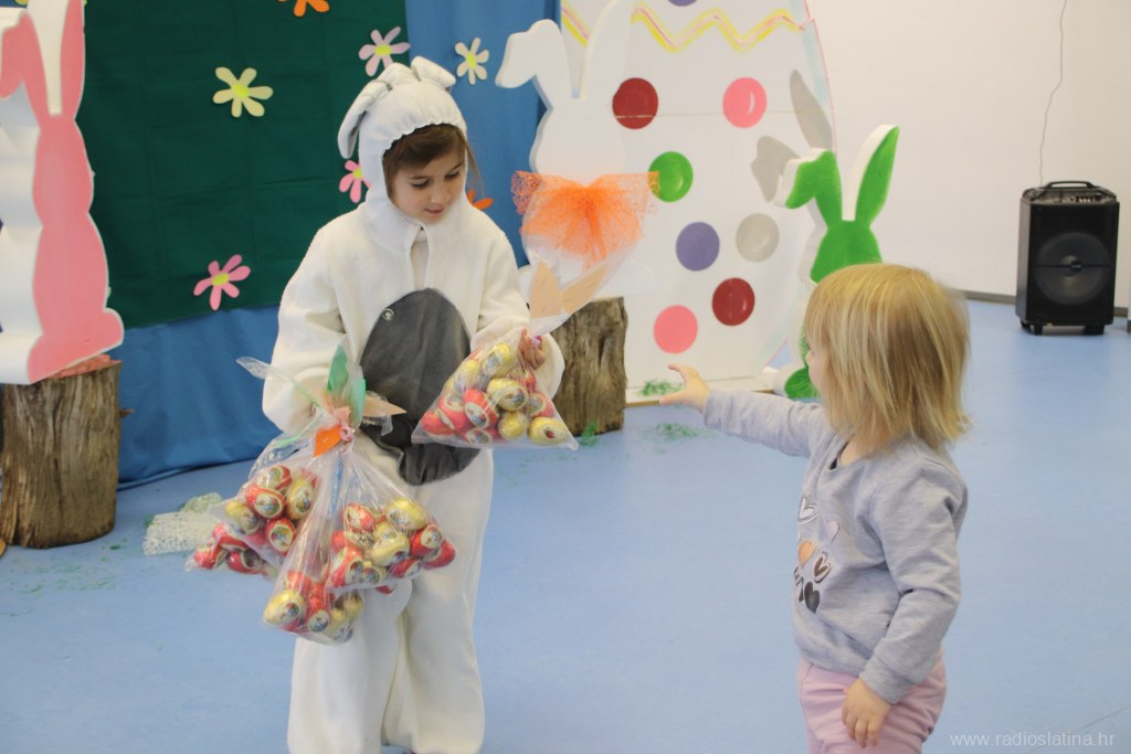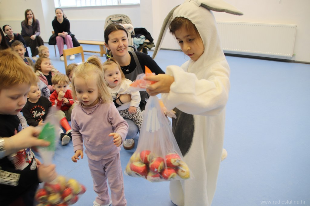Poseban trenutak bio je dolazak pravog uskrsnog zeca, kojeg je utjelovila Nikol Ivezić iz skupine Pčelice, a koji je djeci uručio prigodne poklone – čokoladne pisanice. Oduševljenje i osmijesi na dječjim licima bili su najveća nagrada.